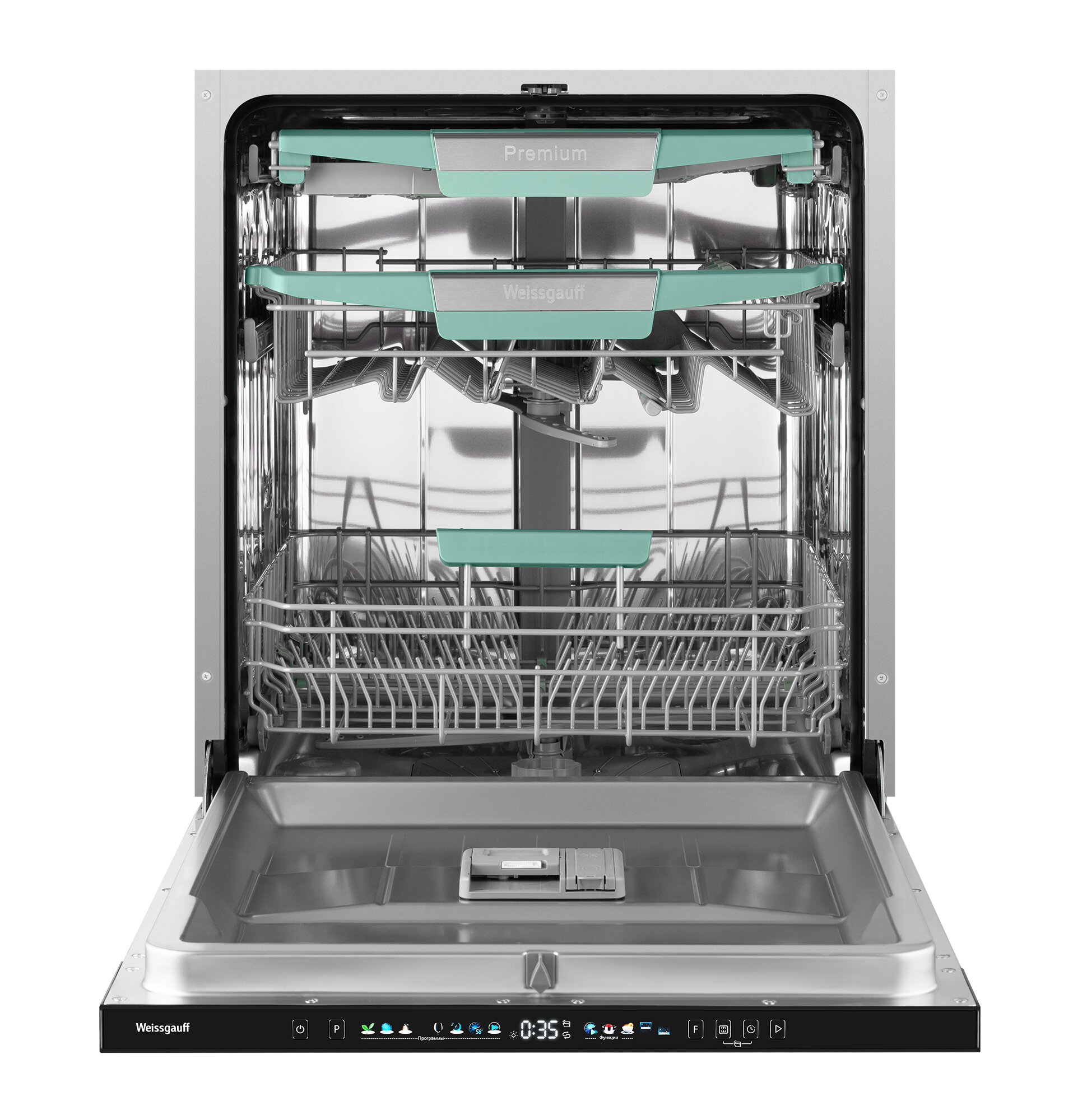 автоматическое открывание дверцы по завершении цикла, дисплей, регулируемая по высоте корзина для посуды, таймер отсрочки