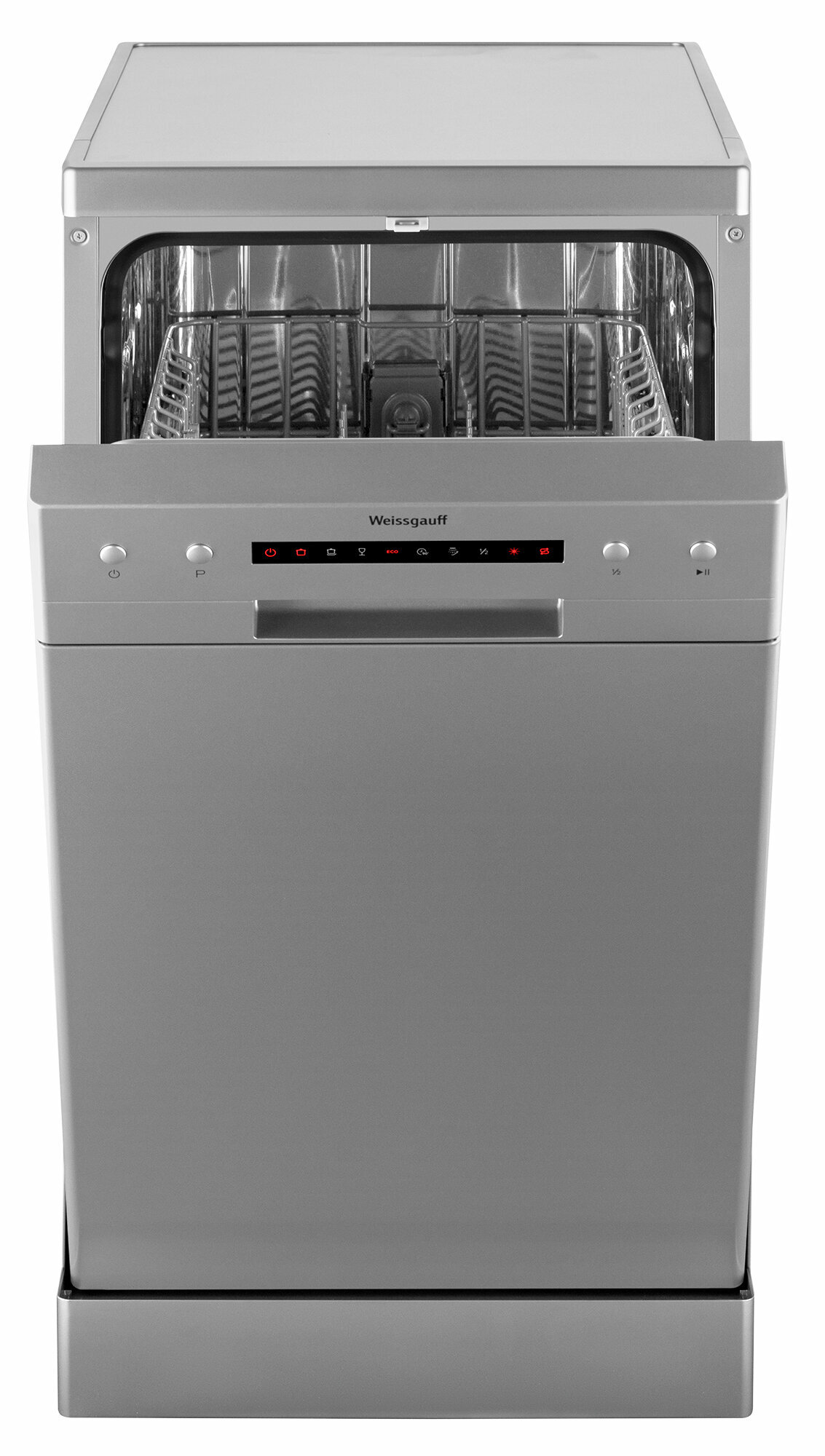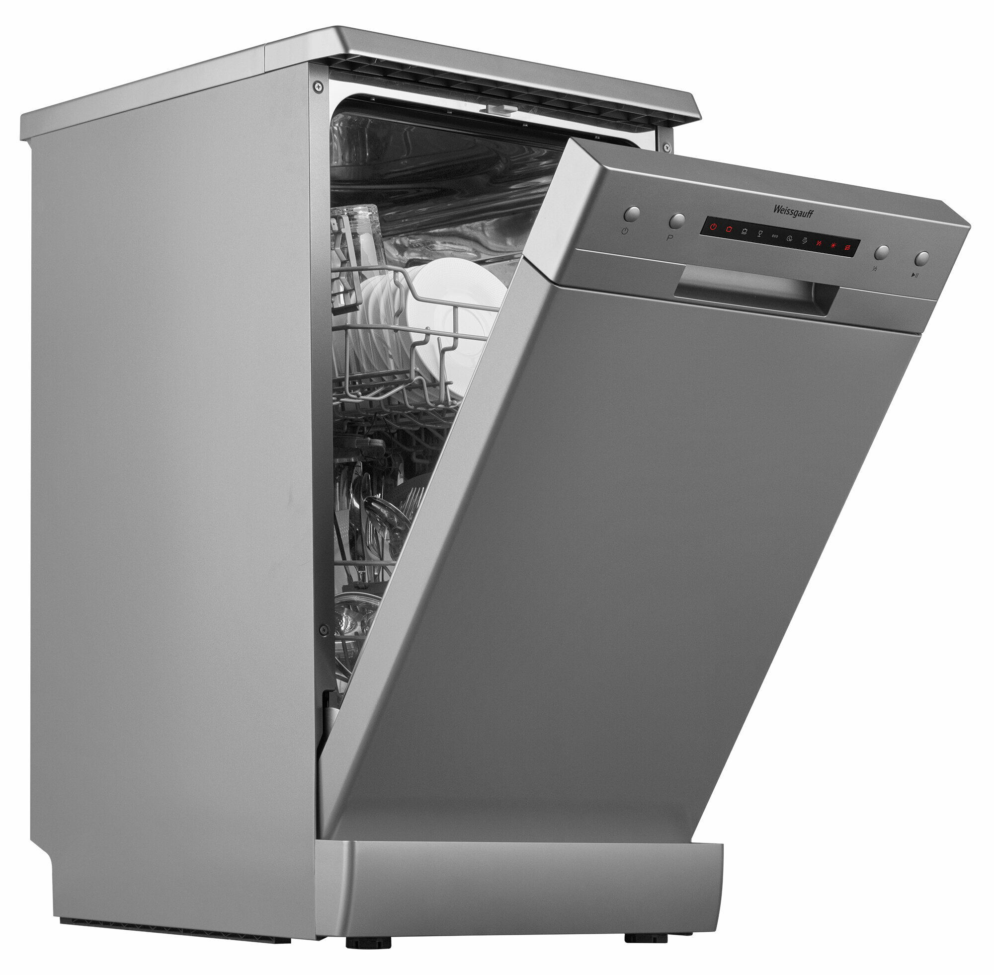 Отдельностоящая посудомоечная машина Weissgauff с полностью электронным управлением, вместимостью посуды до 9 комплектов и вертикальной регулировкой средней корзины - это не только экономия места на кухне, но и отличное качество мытья вашей посуды.