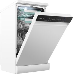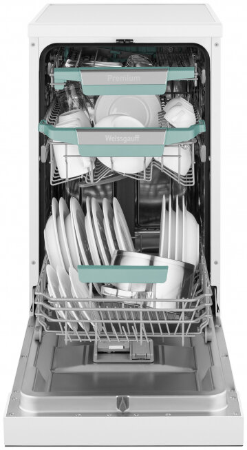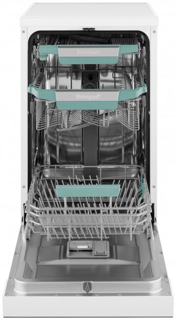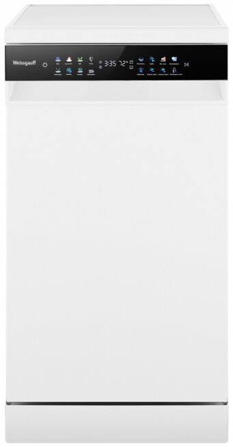 Узкая отдельностоящая посудомоечная машина Weissgauff c корпусом, выполненным в белом цвете с инновационным цветным дисплем SMART SCREEN с сенсорным управлением, инверторным двигателем и функцией автоматического открытия дверцы, не только сэкономит место на вашей кухне, но и обеспечит идеальный результат: 3 корзины позволят расположить посуду оптимальным образом для достижения наилучшего качества мытья, а вместимость посуды до 10 комплектов - это не только экономия места на кухне, но и отличное качество мытья вашей посуды.