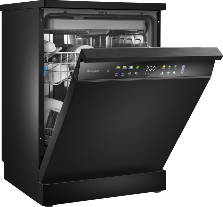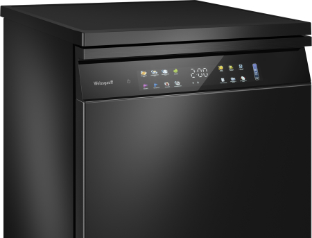 Полноразмерная отдельностоящая посудомоечная машина Weissgauff c корпусом, выполненным в чёрном цвете, вместимостью 15 комплектов, а также инновационный цветной дисплей SMART SCREEN с сенсорным управлением, что делает данную модель не только эффективной, но и по-настоящему удобной в работе-это одна из наиболее передовых моделей среди посудомоечных машин Weissgauff