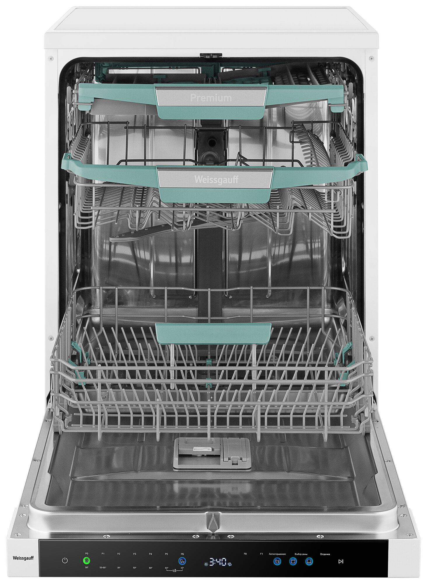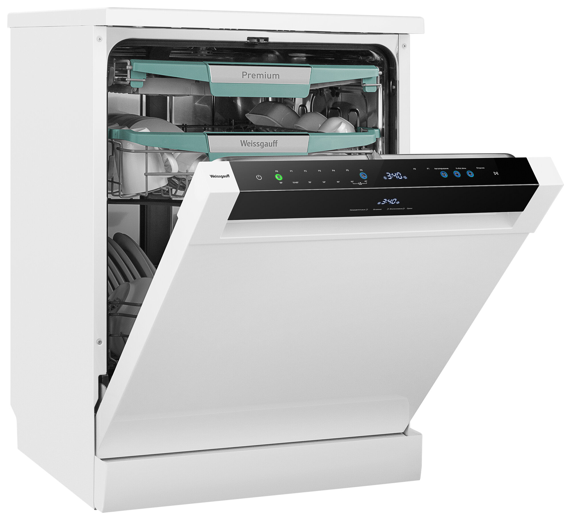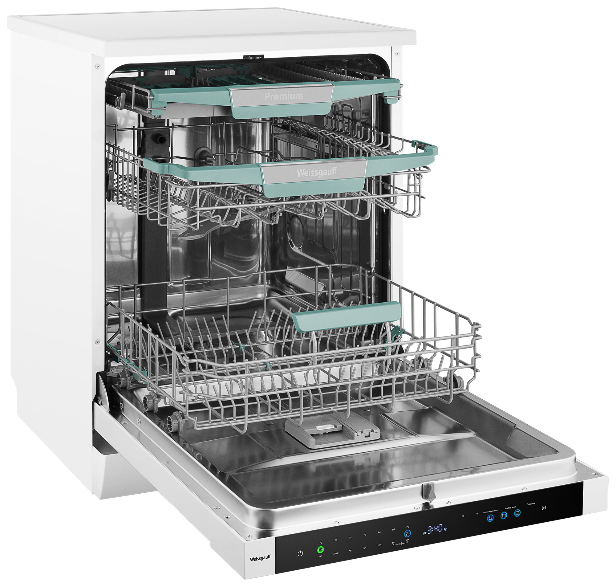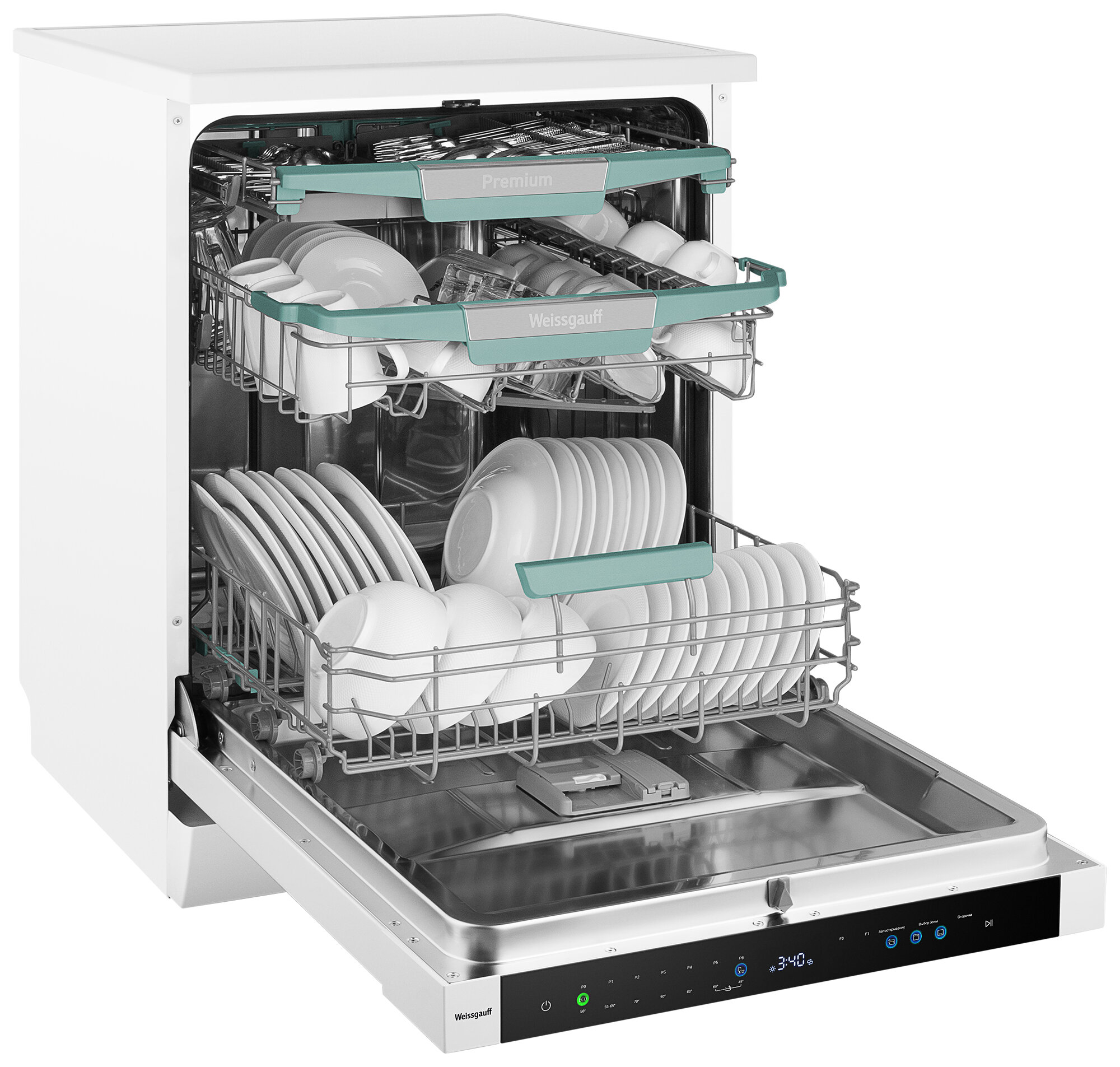 Полноразмерная отдельностоящая посудомоечная машина Weissgauff с автоматическим открыванием дверцы по завершении цикла, инверторным двигателем, сенсорным управлением, тремя корзинами и вместимостью посуды до 14 комплектов - это одна из наиболее передовых моделей 2024 года среди посудомоечных машин Weissgauff!