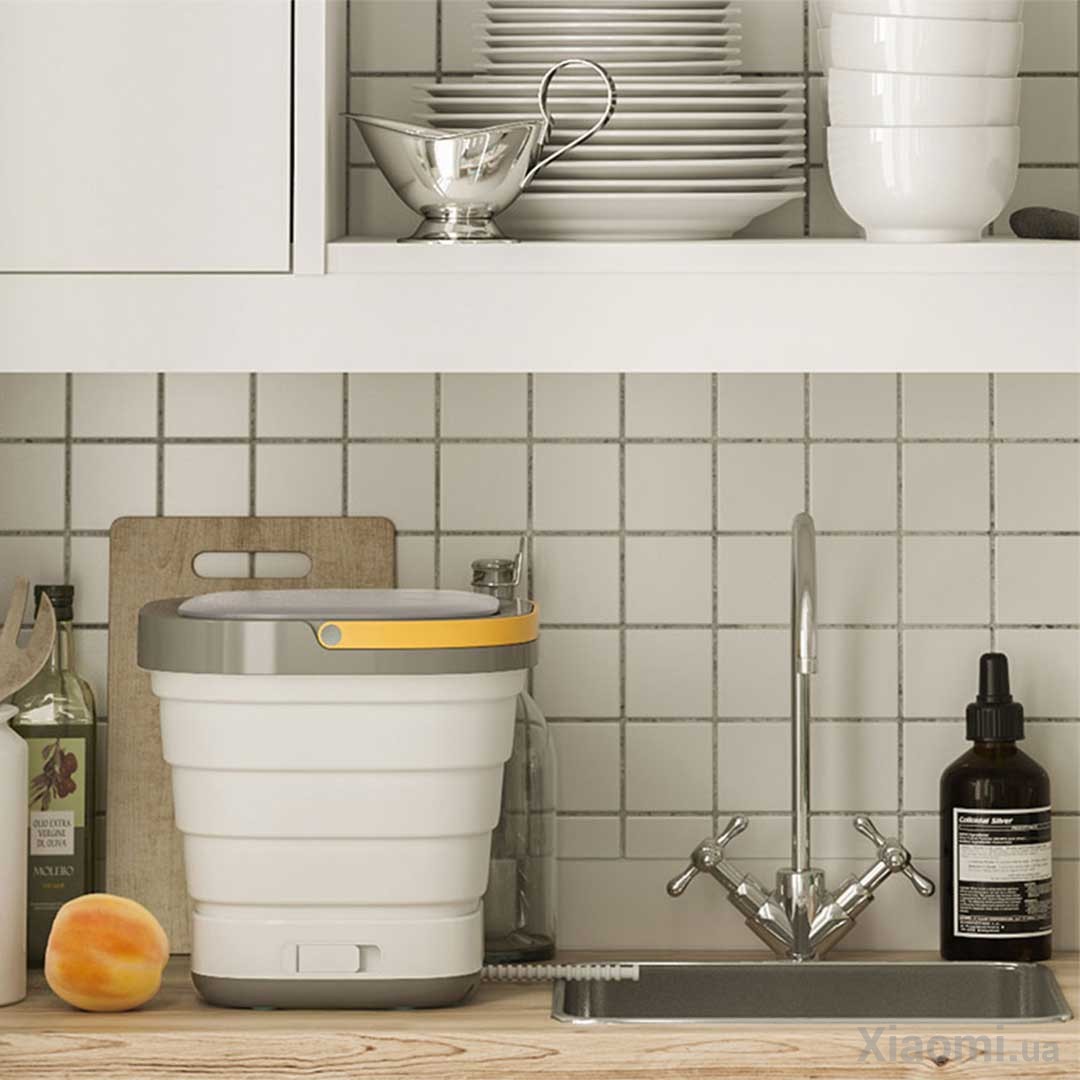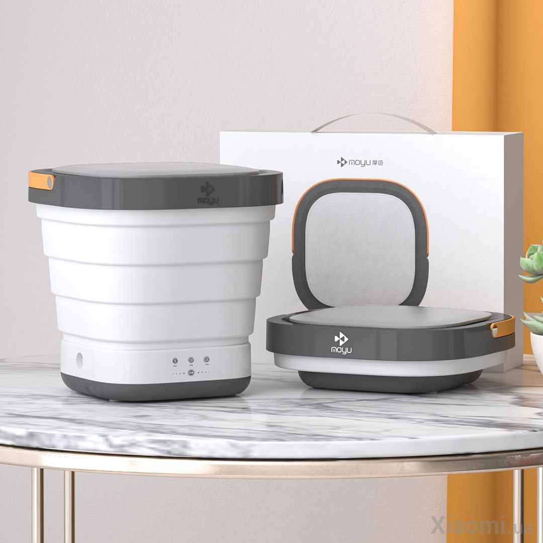 MOYU (XPB08-F1) — это складная стиральная машина, которая благодаря системе складывания в виде гармошки, сжимается до столь компактных размеров, что может поместиться в дорожном чемодане.