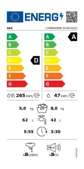 Оригинальное название: AEG L7WBA60680 Waschtrockner / DualSense / 8 kg Waschen / 5 kg Trocknen, D
