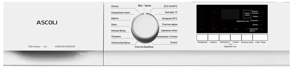 Программы стирки: Стирка изделий из хлопка, Отжим, Стирка нижнего белья, Стирка изделий из шерсти, Стирка изделий из шелка, Сушка: Смешанные ткани, Быстрая стирка, Полоскание + отжим, Экономичная стирка