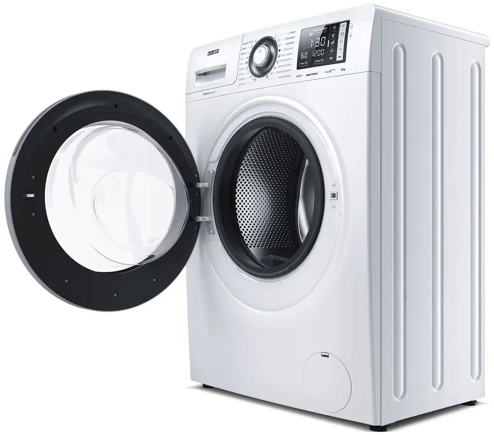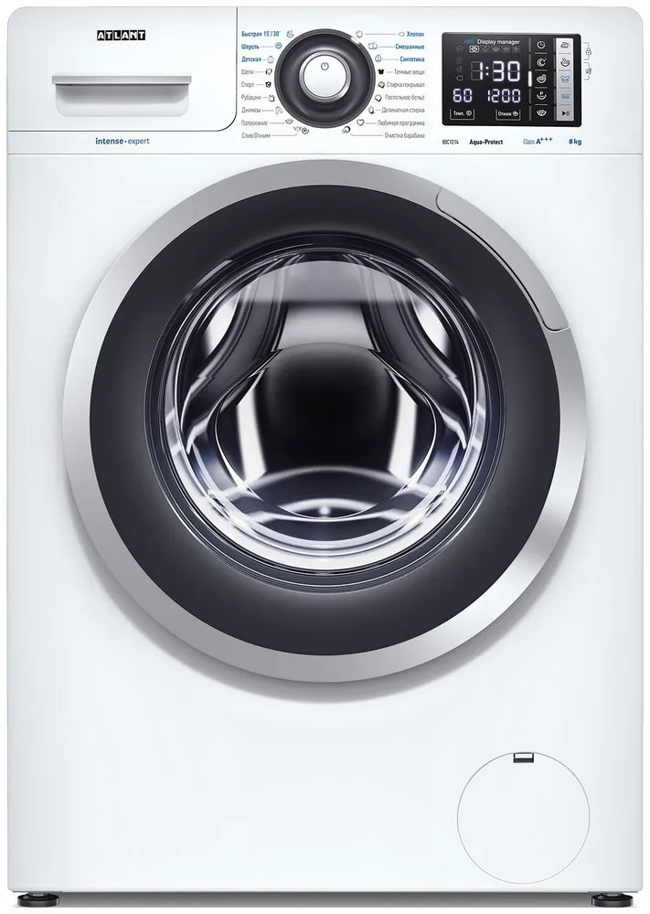 Программы стирки: Быстрая стирка, Стирка смешанных тканей, Стирка деликатных тканей, Стирка изделий из хлопка + предварительная стирка, Стирка изделий из синтетики, Стирка изделий из шерсти, Стирка изделий из шелка, Стирка спортивной одежды, Полоскание, Стирка рубашек, Стирка изделий из джинсовой ткани, Стирка темных вещей