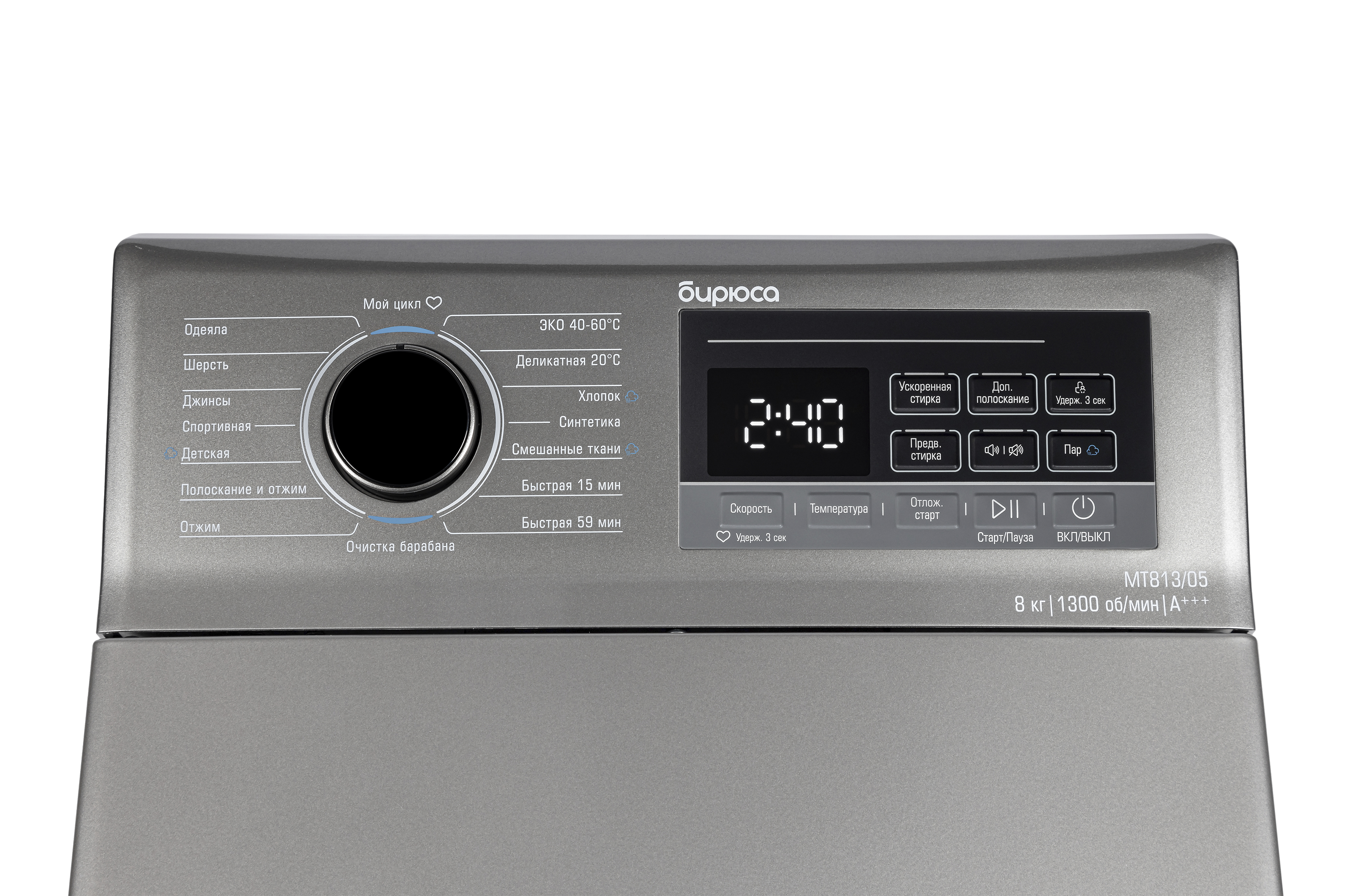 Программы ЭКО 40-60, деликатная 20, хлопок, синтетика, смешанные ткани, быстрая 59/15 мин, полоскание и отжим, отжим