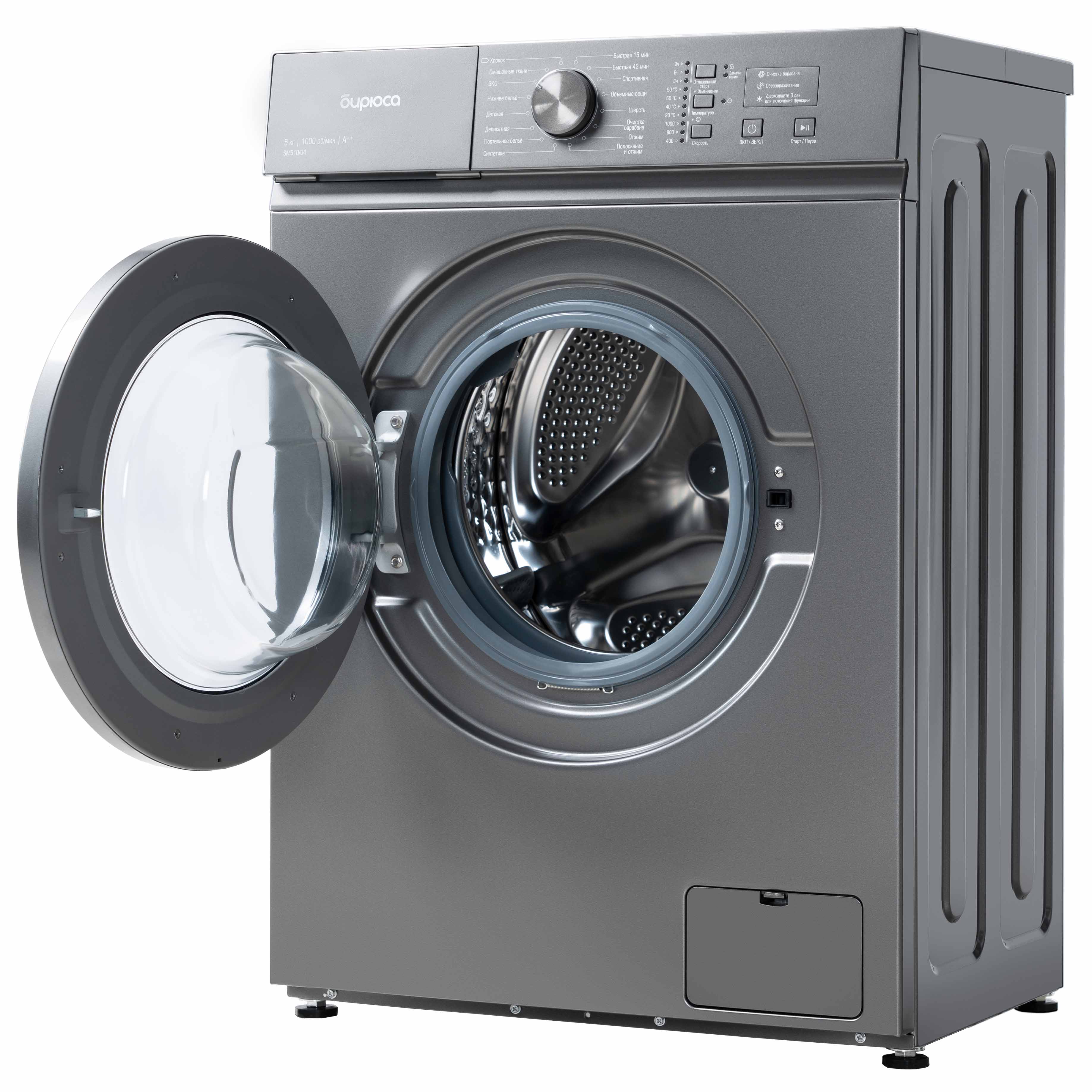 Программы Хлопок, смешанные ткани, деликатная, синтетика, быстрая, шерсть, очистка барабана, отжим, полоскание и отжим