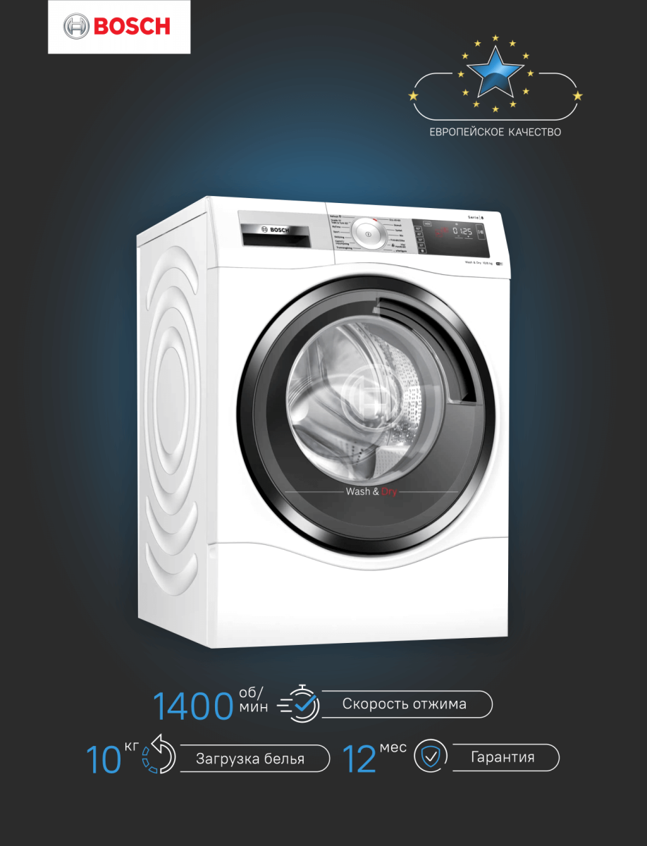 Загрузка белья (кг) 10, загрузка для сушки - 6 кг
