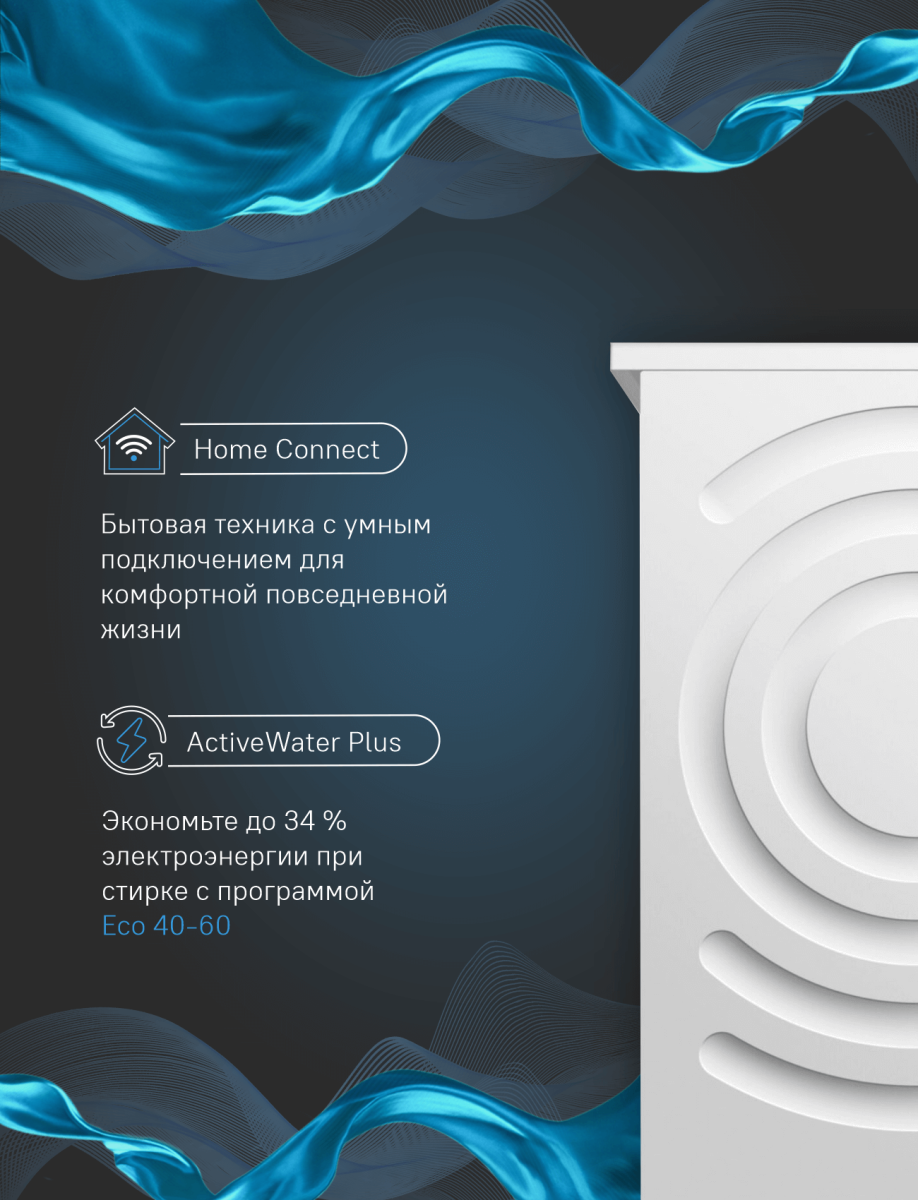 Доп. функции Технология VarioPerfectSpeedPerfect, Функция «Вода +», Контроль пенообразования, Подавление дисбаланса при отжимеавтоматика с 3D-сенсором, Функция дозагрузки