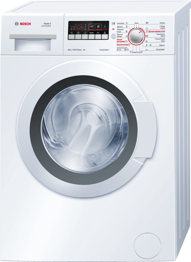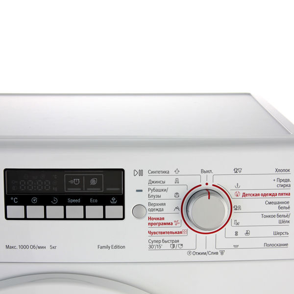Особенности VarioPerfect: оптимизация параметров программы по расходу электроэнергии или по времени при неизменно высоком качестве стирки. Большой многофункциональный дисплей: время до окончания, индикация хода программы, выбор температуры, выбор скорости отжима, таймер.