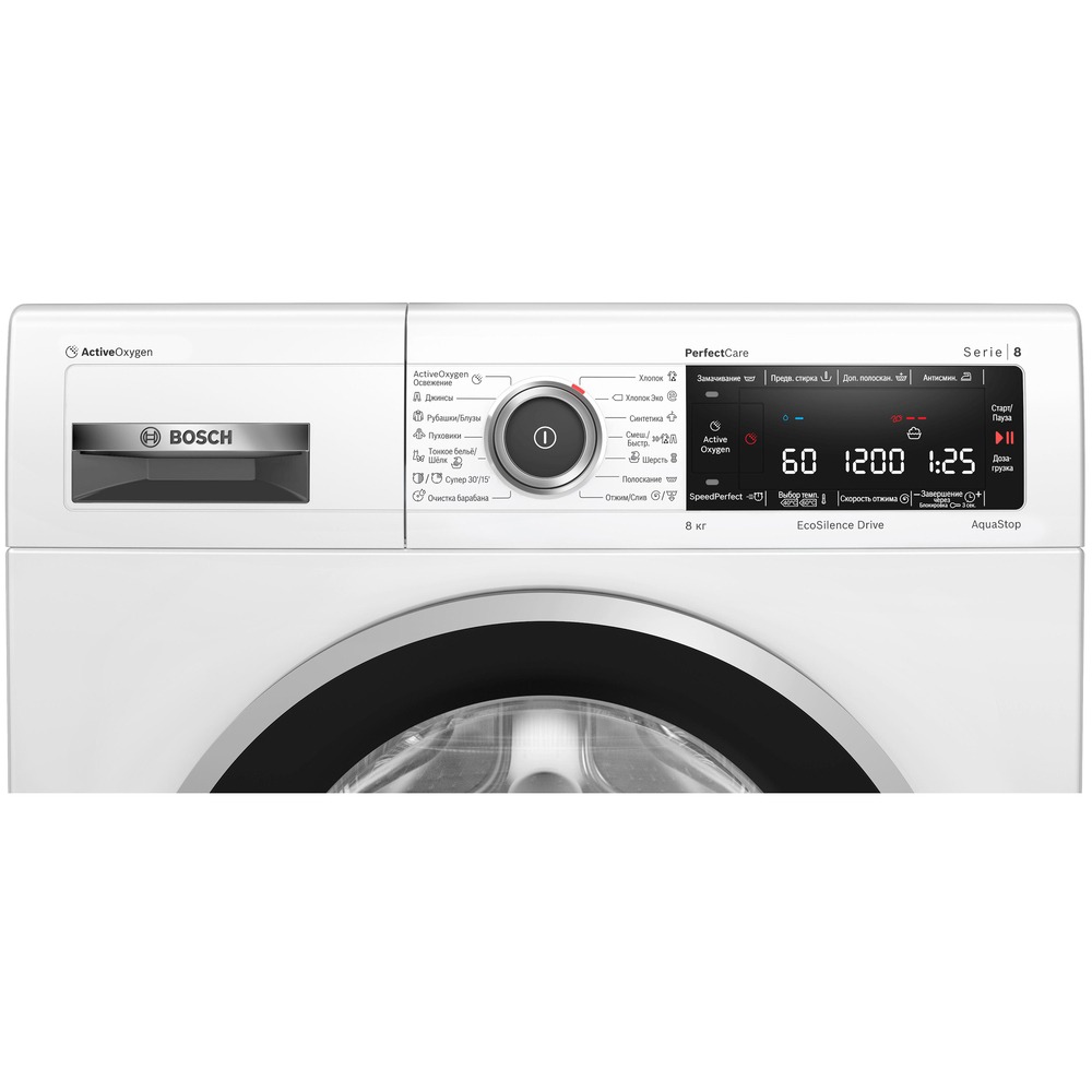 Программы хлопок, хлопок Эко, синтетика, смешанное/быстрая, шерсть, полоскание, отжим/слив, очистка барабана, супер 30/15, тонкое бельё/шёлк, пуховики, рубашки/блузы, джинсы, ActiveOxygen освежение