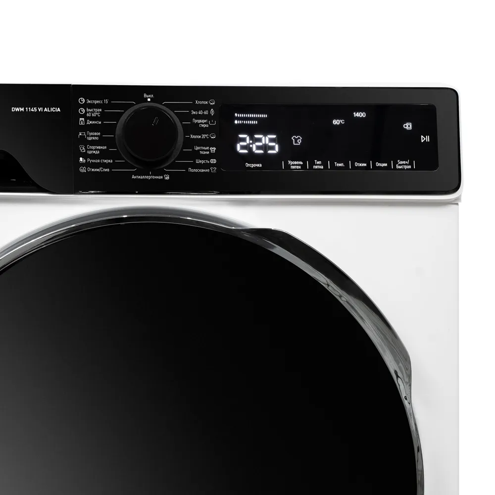 Программы стирки: Экономичная стирка, Быстрая стирка, Предварительная стирка, Ручная стирка, Стирка верхней одежды, Стирка деликатных тканей, Стирка изделий из джинсовой ткани, Стирка изделий из синтетики, Слив, Стирка изделий из хлопка, Стирка изделий из хлопка + предварительная стирка, Стирка изделий из шерсти, Стирка одеял, Стирка детской одежды, Стирка темных вещей, Удаление пятен, Цветное белье, Стирка нижнего белья, Отжим, Полоскание