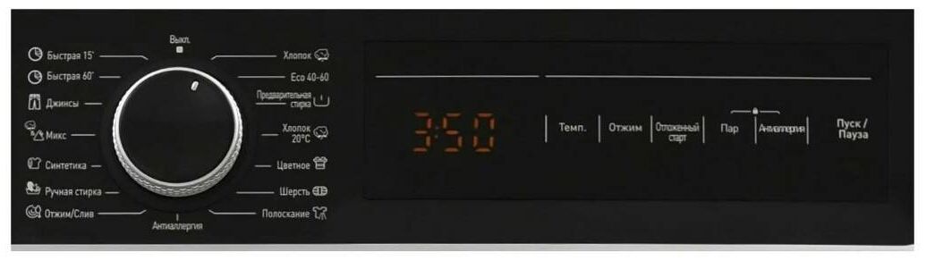 выбор скорости отжима, выбор температуры стирки, отложенный старт