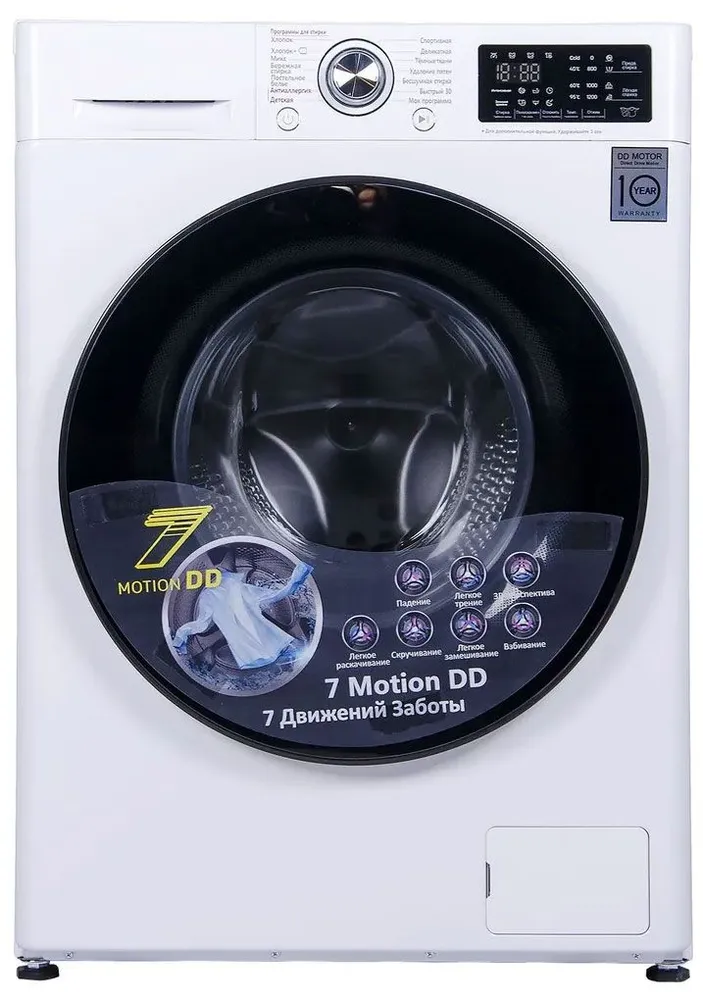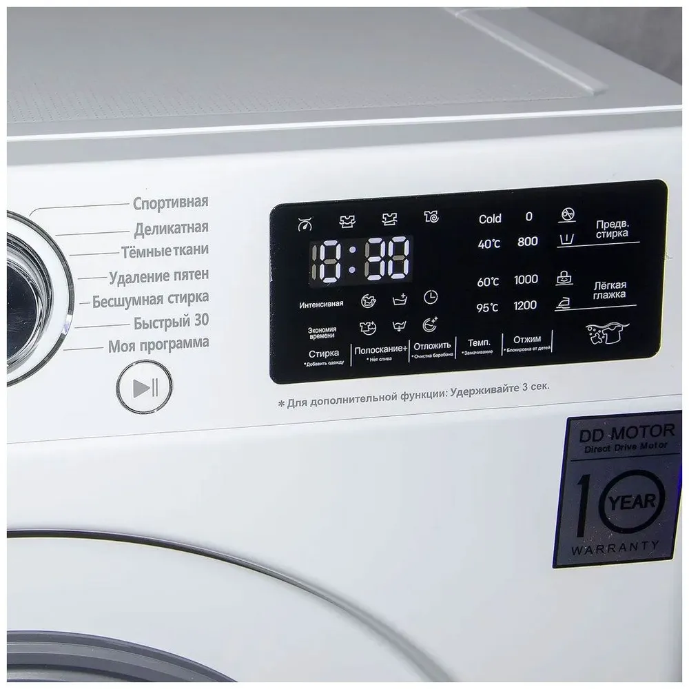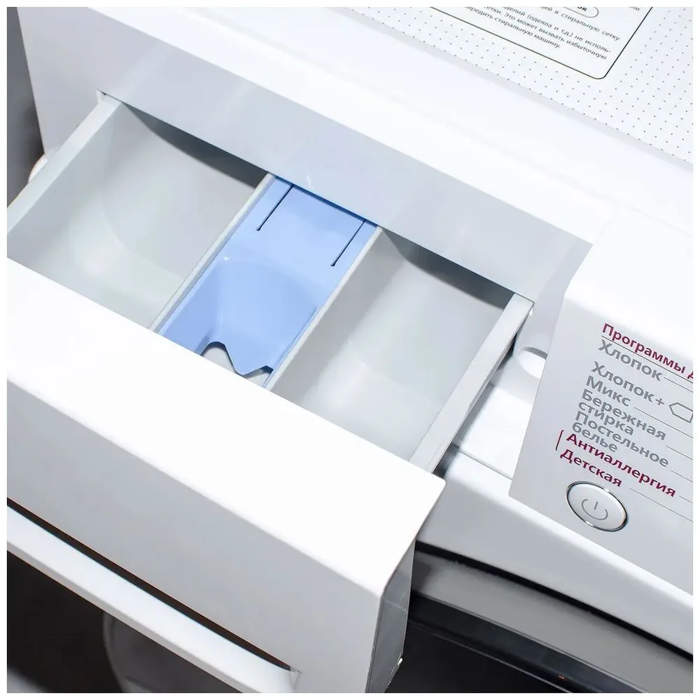 Программы стирки: Стирка изделий из хлопка, Быстрая стирка, Стирка смешанных тканей, Стирка деликатных тканей, Стирка детской одежды, Стирка спортивной одежды, Стирка темных вещей, Удаление пятен