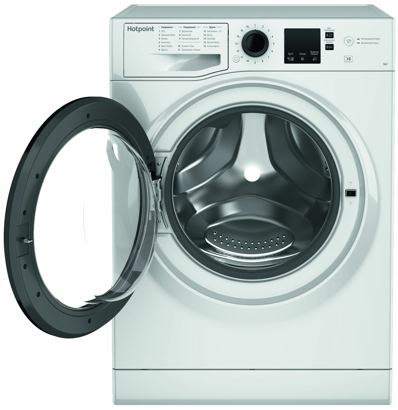 быстрая стирка, гипоаллергенная стирка, дополнительное полоскание, интенсивная стирка, стирка деликатных тканей, стирка детских вещей, стирка синтетики, стирка хлопка, стирка шерсти, удаление пятен, экономичная программа