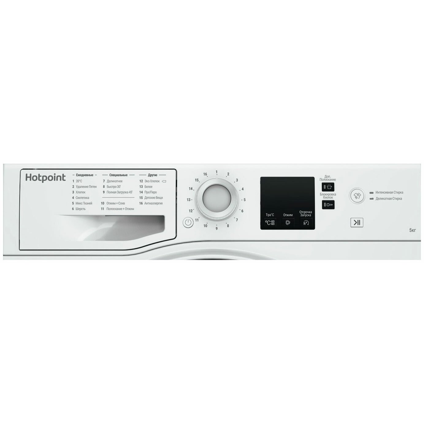 Дополнительное полоскание Выбор температуры / скорости отжима; Отсрочка запуска / Блокировка кнопок