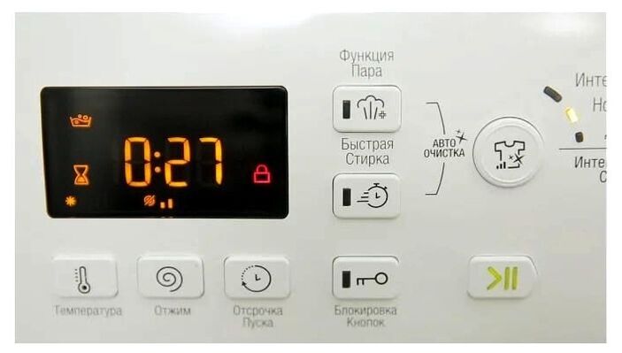 Индикация индикация времени, оставшегося до окончания стирки, индикация выполнения программы, индикация функции, индикация вкл/выкл, индикация температуры, индикация скорости отжима