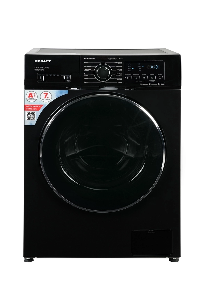 Стиральная машина Kraft KF-MS 7206 FBC с загрузкой до 7 кг и 12 программами стирки подходит для любых типов ткани. Благодаря отложенному старту и системам защиты от перелива и блокировке от детей, автоматическому перераспределению белья, контролю пенообразования и автоочистке стиральную машину можно безопасно включать в любое время, даже ночью. Контроль дисбаланса равномерно распределяет белье в барабане и снижает вибрацию стиральной машины во время отжима.