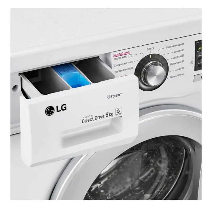 Программы стирки: Быстрая стирка, Стирка деликатных тканей, Интенсивная стирка, Стирка детской одежды, Полоскание, Полоскание + отжим, Стирка смешанных тканей, Стирка спортивной одежды, Стирка изделий из хлопка, Стирка изделий из шерсти