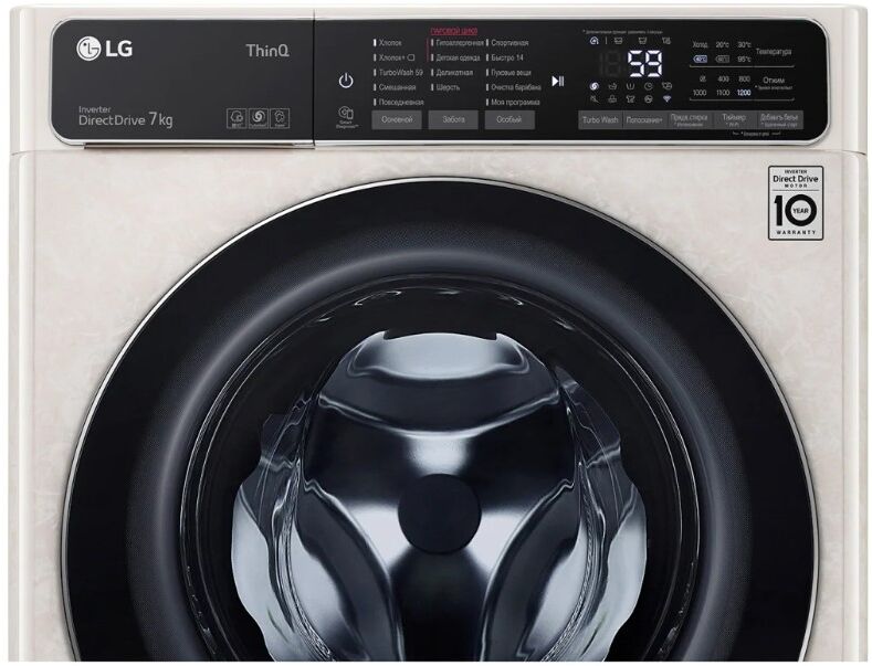 энергопотребление 1.06 кВт/ч; функция пара Steam; Wi-Fi; возможность управления через приложение LG ThinQ; автоперезапуск, индикатор рабочего цикла, индикатор времени до конца цикла, индикатор блокировки дверцы, индикатор ошибок/самодиагностика, индикатор пуск/пауза, индикатор загрузки, индикатор температуры, индикатор скорости отжима