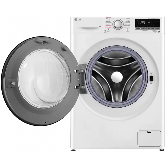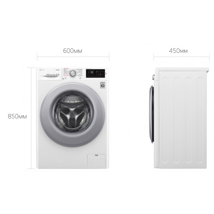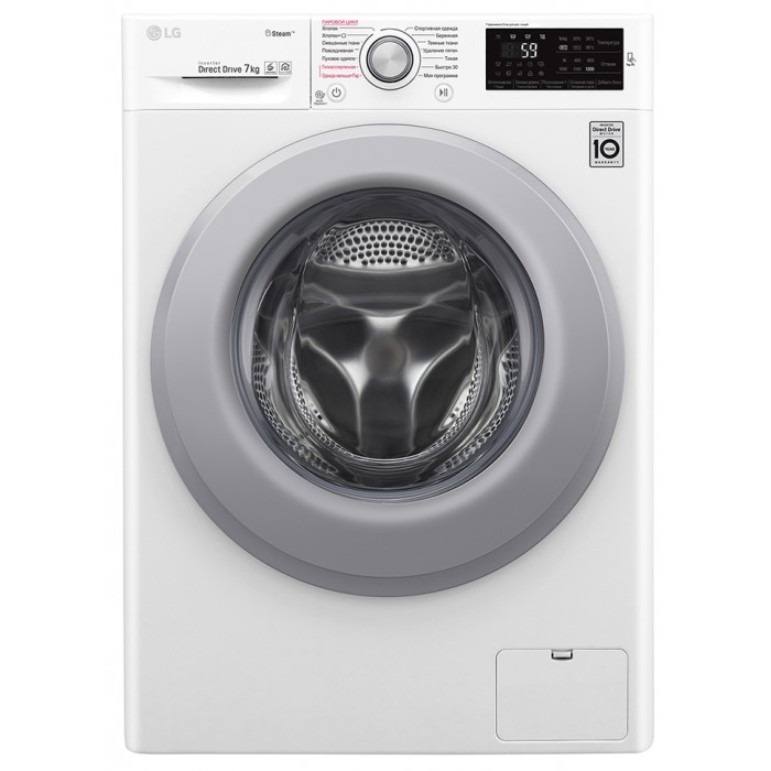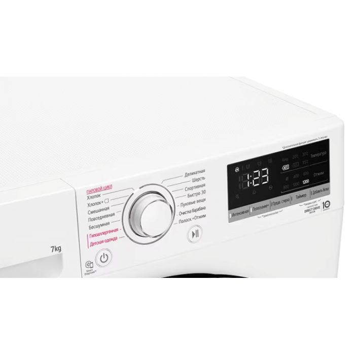 Стиральная машина LG F2V3HS4W с интеллектуальной системой определения типа ткани, загрузкой до 7 кг, 1200 об/мин. глубиной корпуса 45 см, мотор Inverter DD стирка с паром.