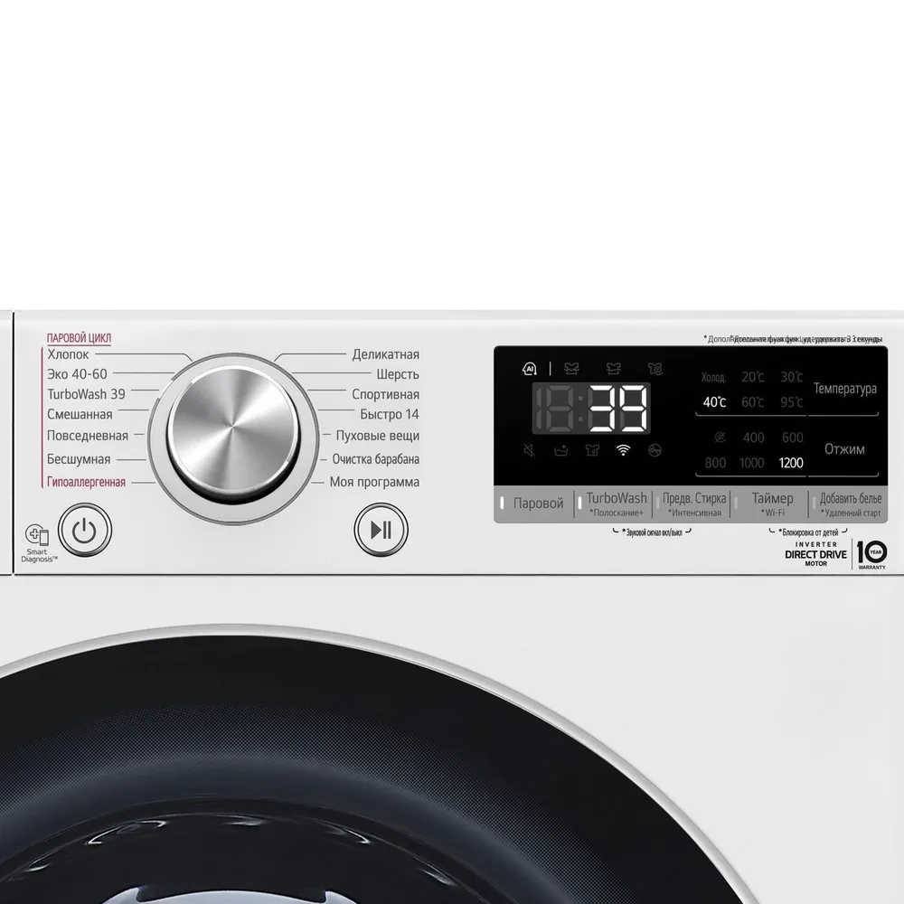 Программы стирки: Быстрая стирка, Предварительная стирка, Стирка деликатных тканей, Стирка изделий из шерсти, Стирка пуховых вещей, Стирка смешанных тканей, Стирка спортивной одежды, Стирка изделий из хлопка, Экономичная стирка