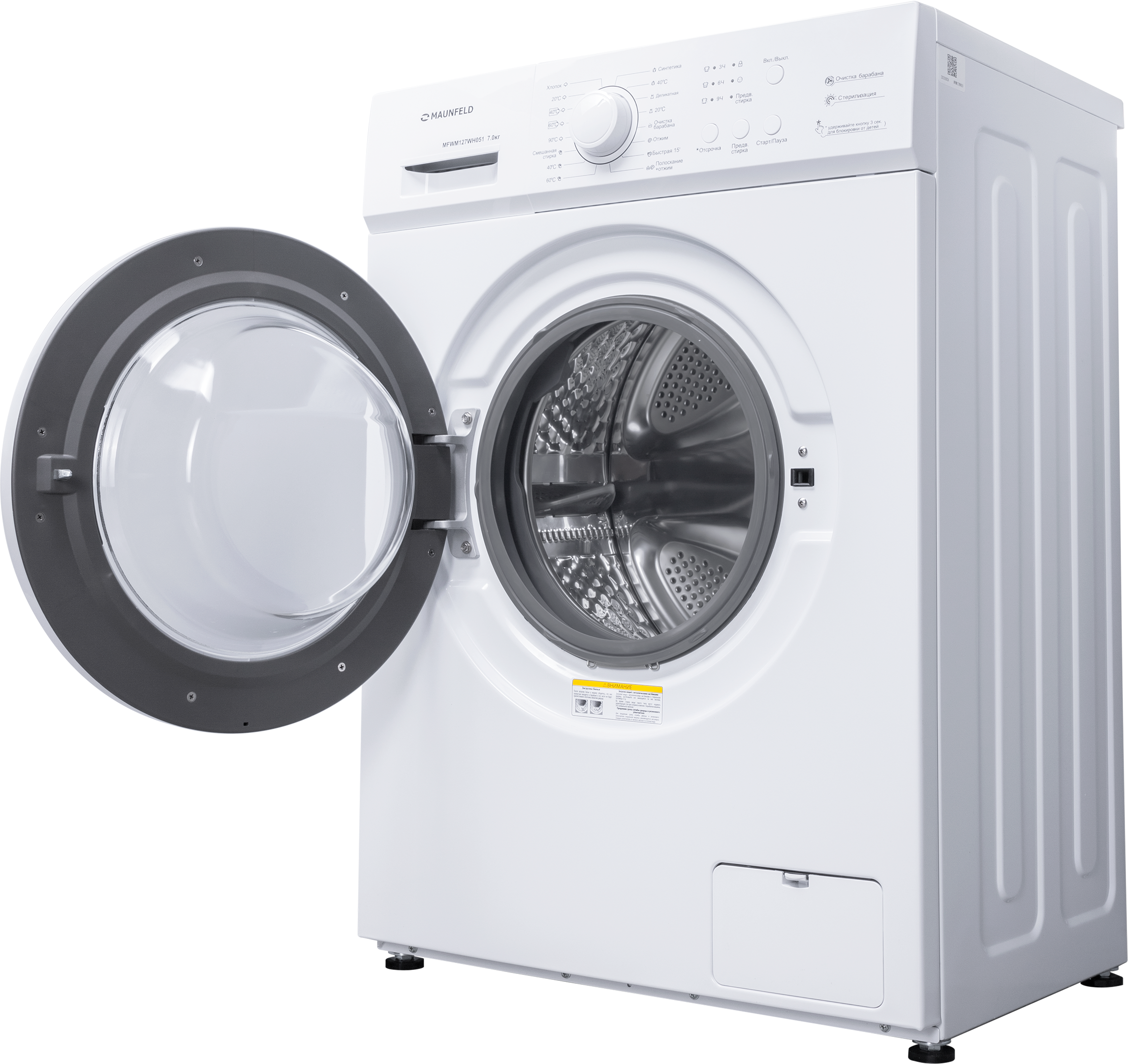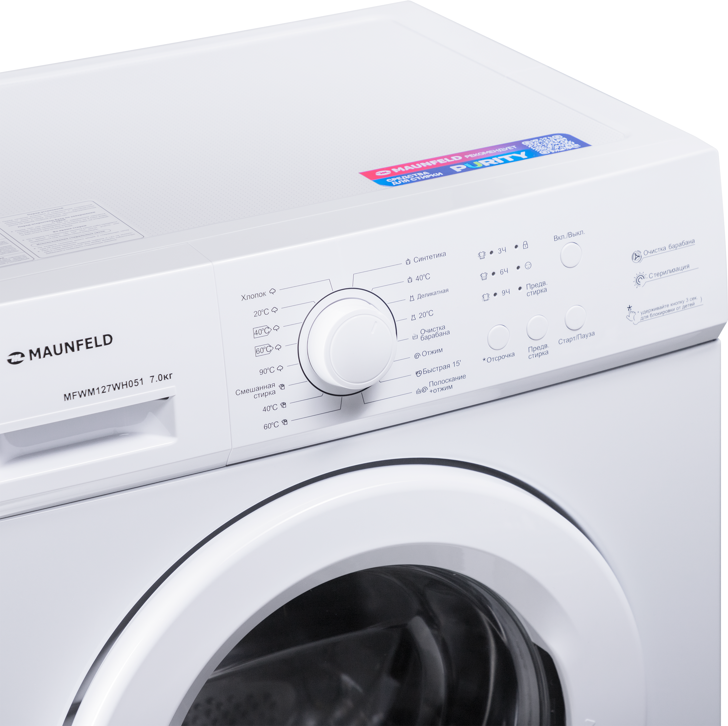 контроль за уровнем пены, отложенный старт, очистка барабана, сигнал окончания стирки