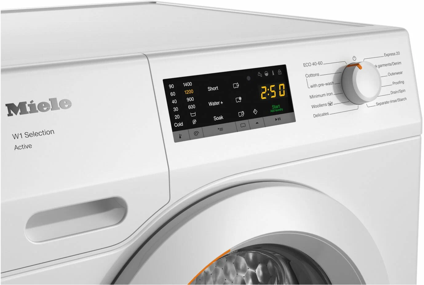 выбор скорости отжима, контроль за уровнем пены, отложенный старт