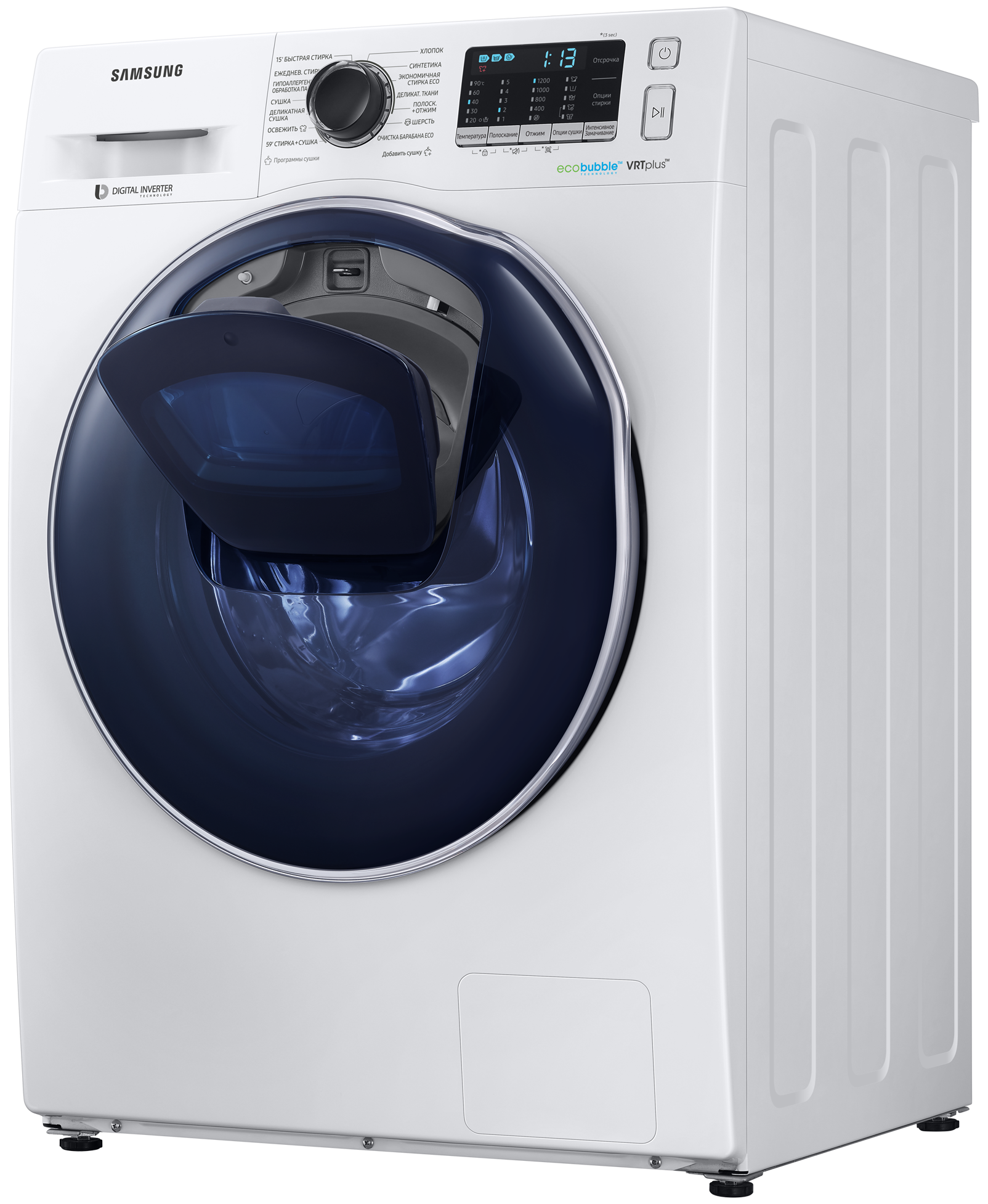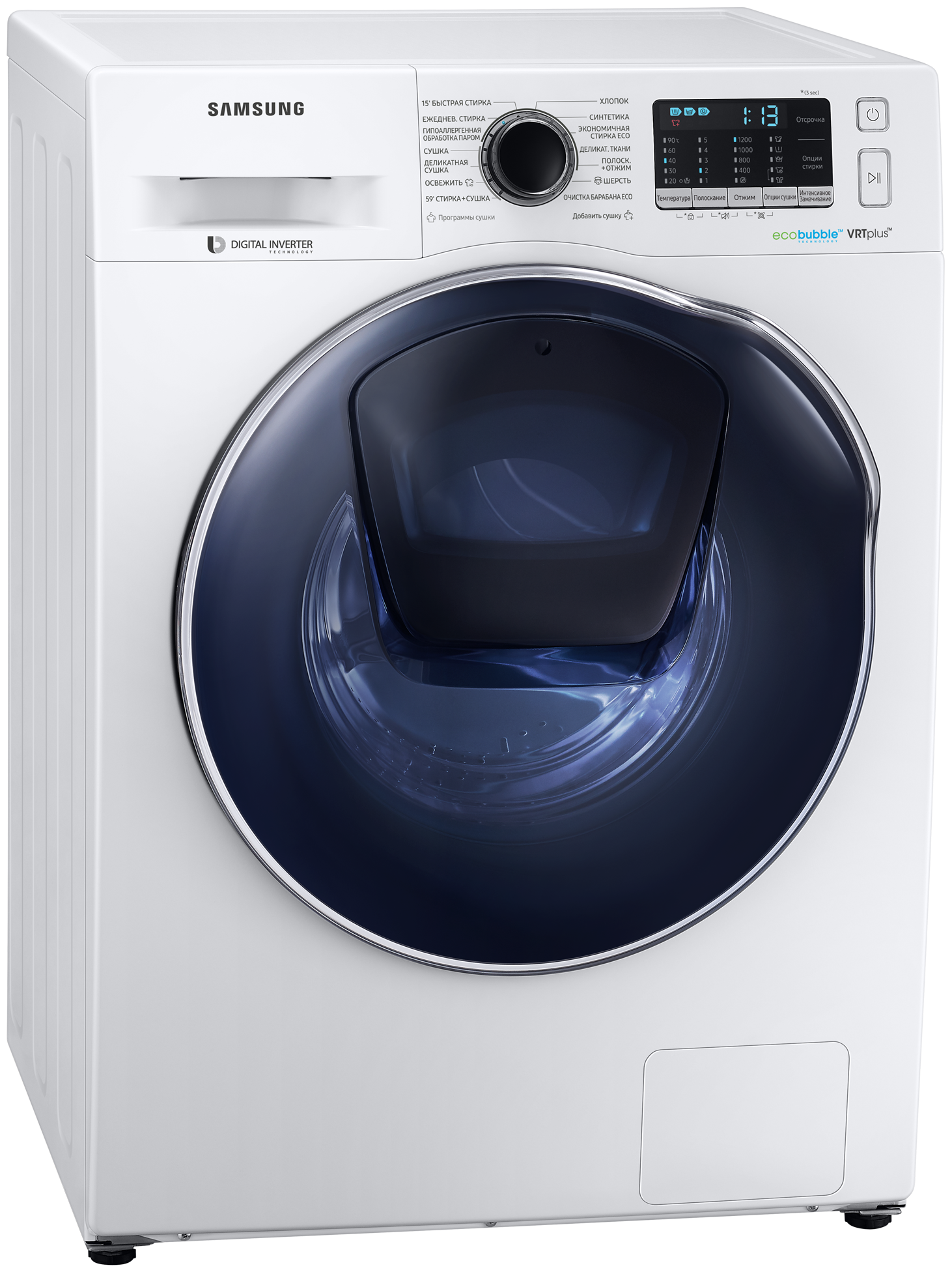 электропотребление за цикл 6,48 кВт*ч; ускоренная стирка + сушка за 59 минут