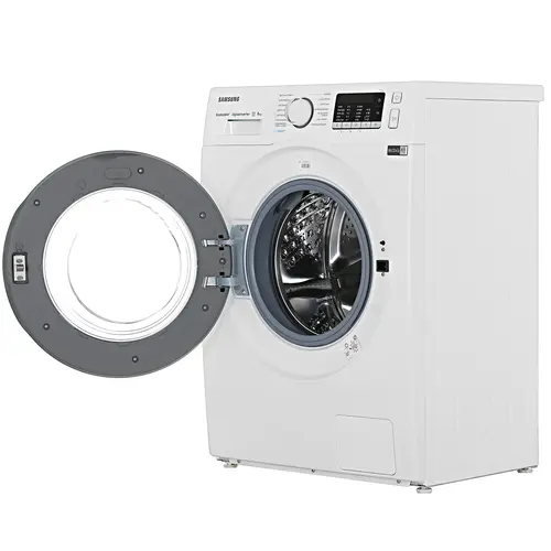 На панели управления расположены дисплей, кнопки и поворотный переключатель. Таймер отложенного запуска до 19 часов позволяет устанавливать определенное время начала стирки. В Samsung WW80AAS25TE/LP реализованы технология защиты от скачков напряжения и блокировка от детей. Соответствие классу A+++ гарантирует экономичное потребление энергии.