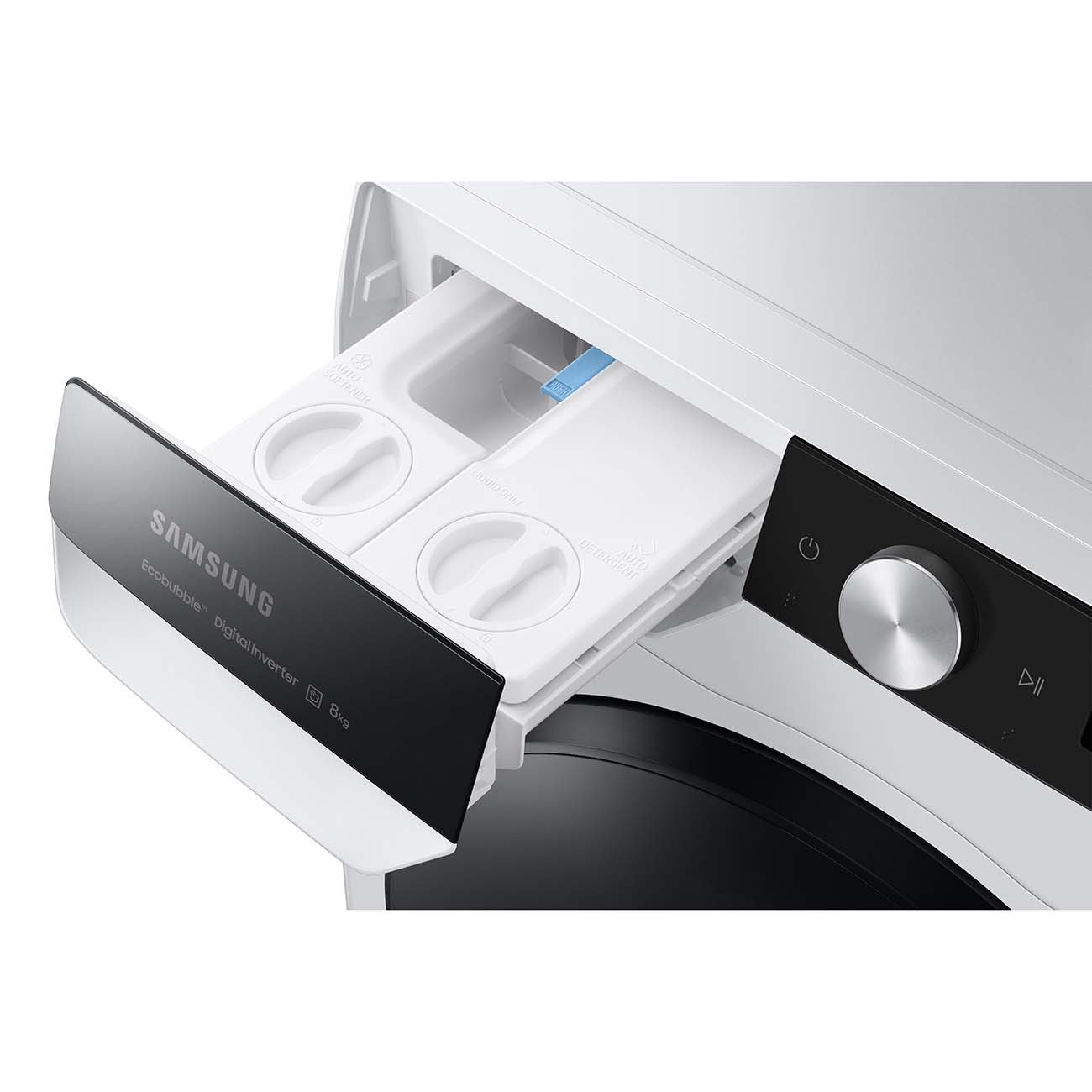 При глубине устройства 45 см барабан вмещает до 8 кг белья. Автоматический диспенсер позволяет оптимизировать расход моющего средства и кондиционера. Заполнить отсек можно один раз на несколько циклов. Технология EcoBubble обеспечивает удаление загрязнений даже при низких температурах.