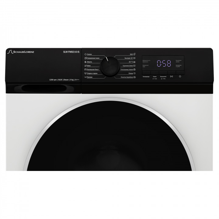 Хлопок, Смешанные ткани, Шерсть, Шелк, Пуховик, Постельное белье, Стирка с паром, Очистка барабана, Удаление пятен, Быстрая стирка 15 мин/20 мин, Эко 40°, Отжим, Полоскание отжим.