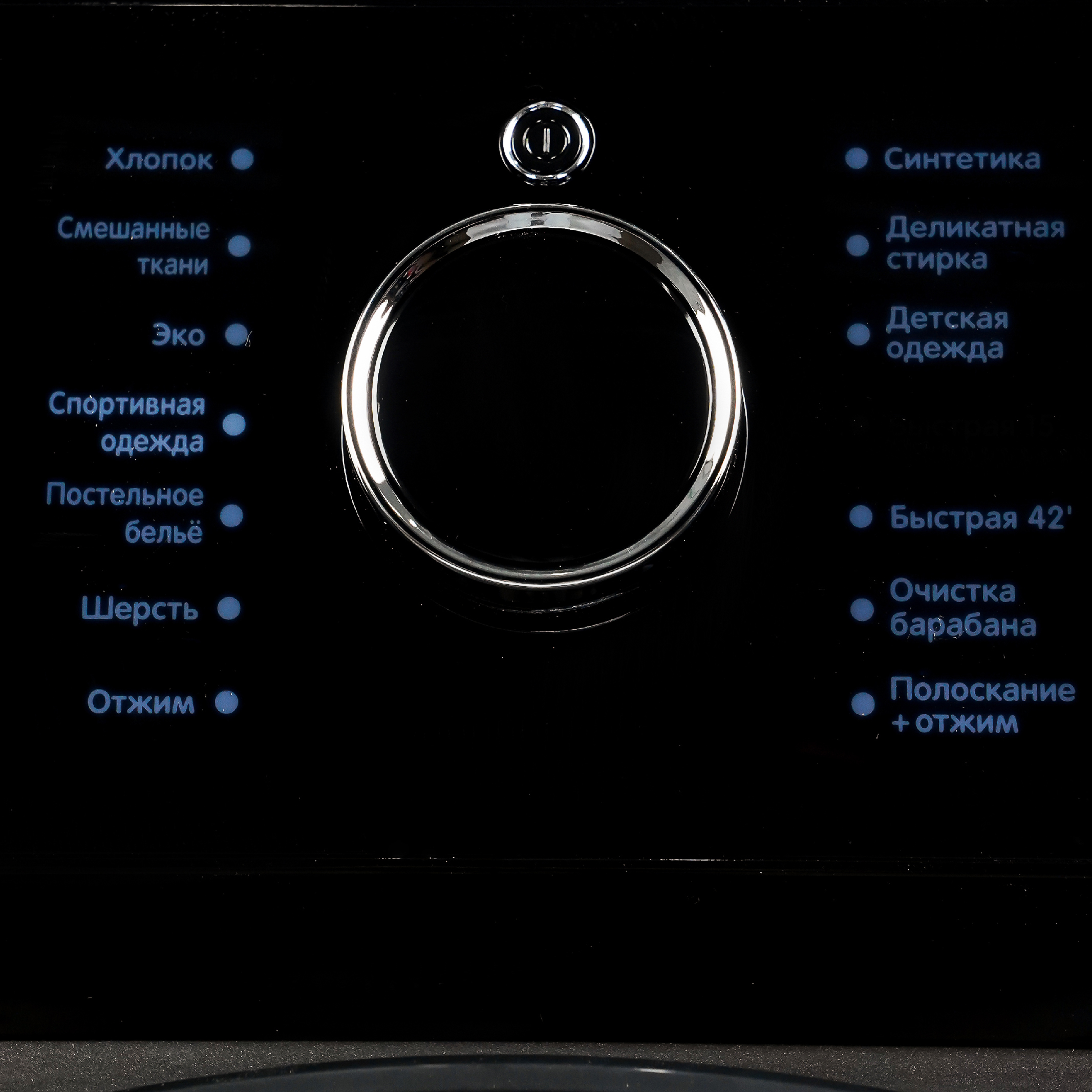 Хлопок, Синтетика, Деликатная стирка, Детская одежда, Быстрая 15',Быстрая 42',Очистка барабана, Полоскание+отжим, Отжим, Шерсть, Постельное белье, Спортивная одежда