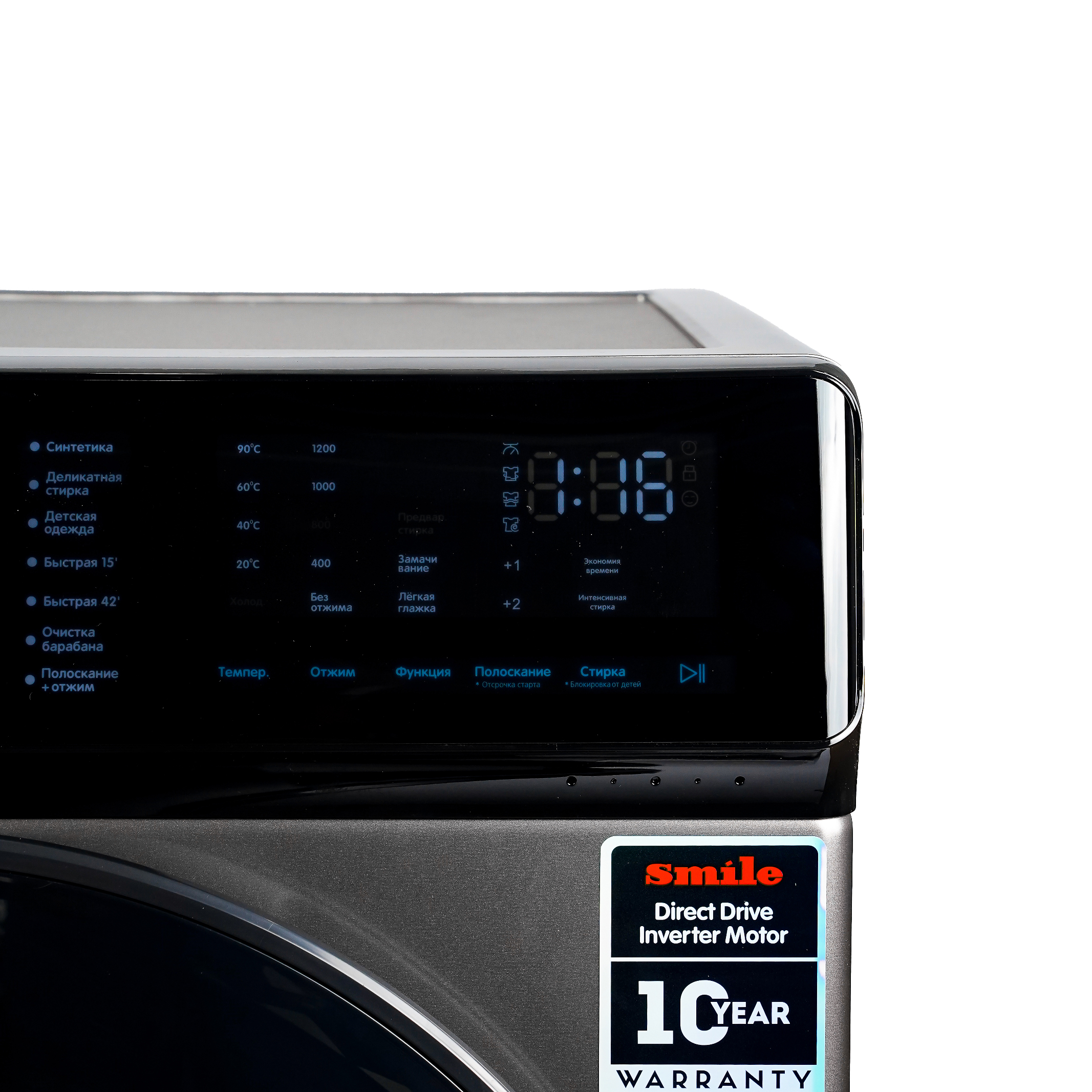 Предварительная стирка, Отсрочка старта, Замачивание, Полоскание+, Интенсивная стирка, Загрязненные вещи, Очистка барабана, Только отжим, Без отжима, Замок