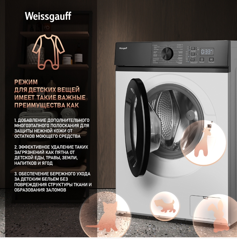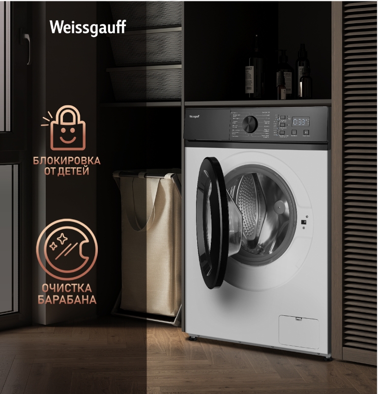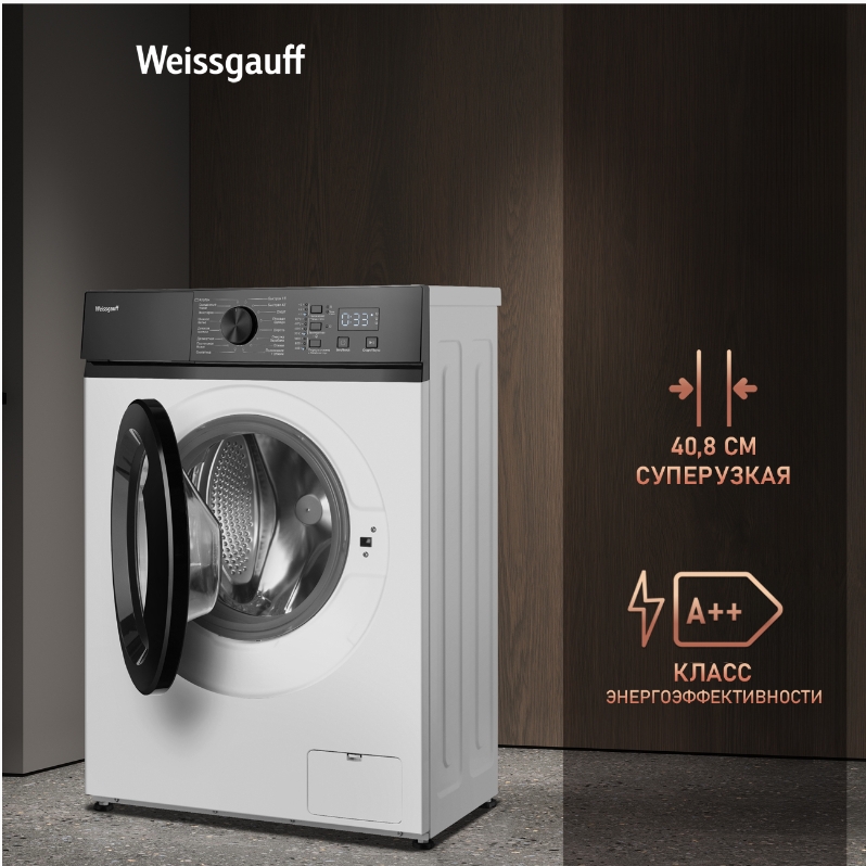 Глубина Slim 40.8 см - мы в Weissgauff знаем, как важна в стиральной машине не только функциональность, но и компактность. Такая глубина позволит удобно разместить эту модель даже в самой небольшой квартире!