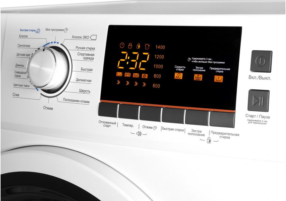 стирка деликатных тканей, экономичная стирка, стирка детской одежды, стирка джинсов, стирка спортивной одежды, программа стирки смешанных тканей, супер-полоскание, быстрая стирка, предварительная стирка