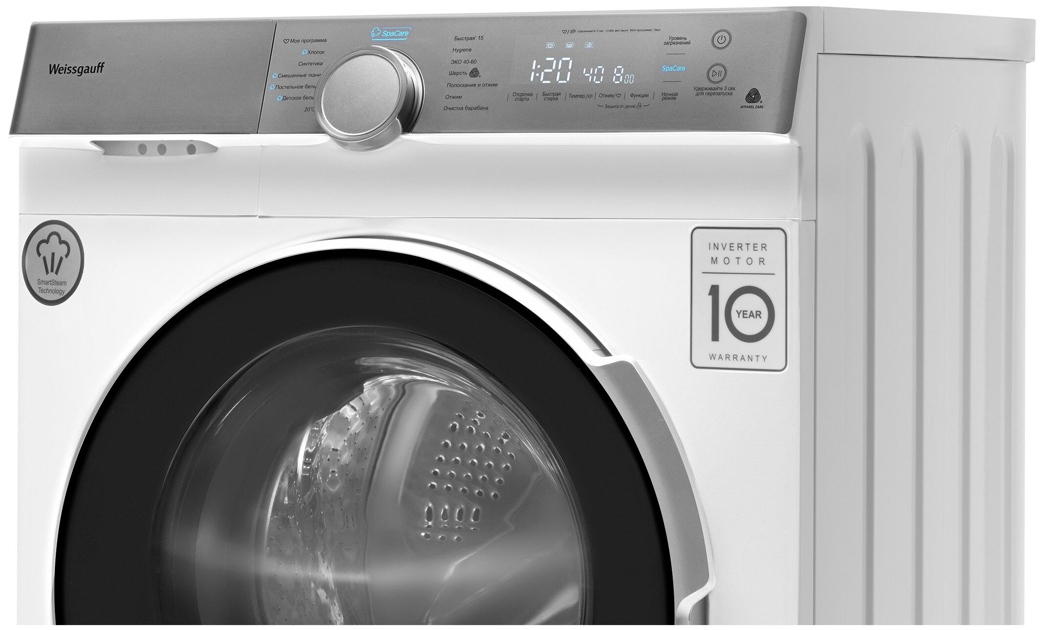 Technologic Motor BLDC; функция пара SpaCare; функция Hygiene; функция "Моя программа" ; тихий режим ; программа для стирки постельного белья; программа для очистки барабана; максимальная температура воды 90℃; блокировка двери электромагнитная; тип вилки евро; длина шнура питания 1.5 м; длина впускного шланга 1 м; длина сливного шланга 1.6 м; объём барабана 45.5 л; диаметр барабана 47.2; внешний диаметр рамки дверцы 48 см