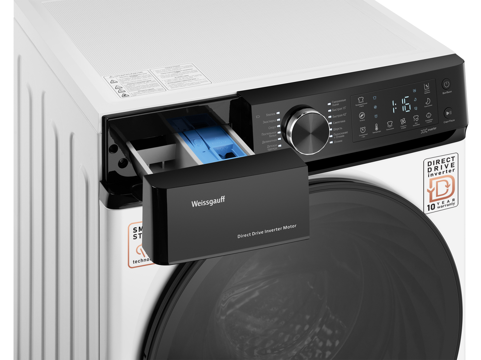 Особые программы: Гигиена, Тихий режим , Стирка с паром, Очистка барабана