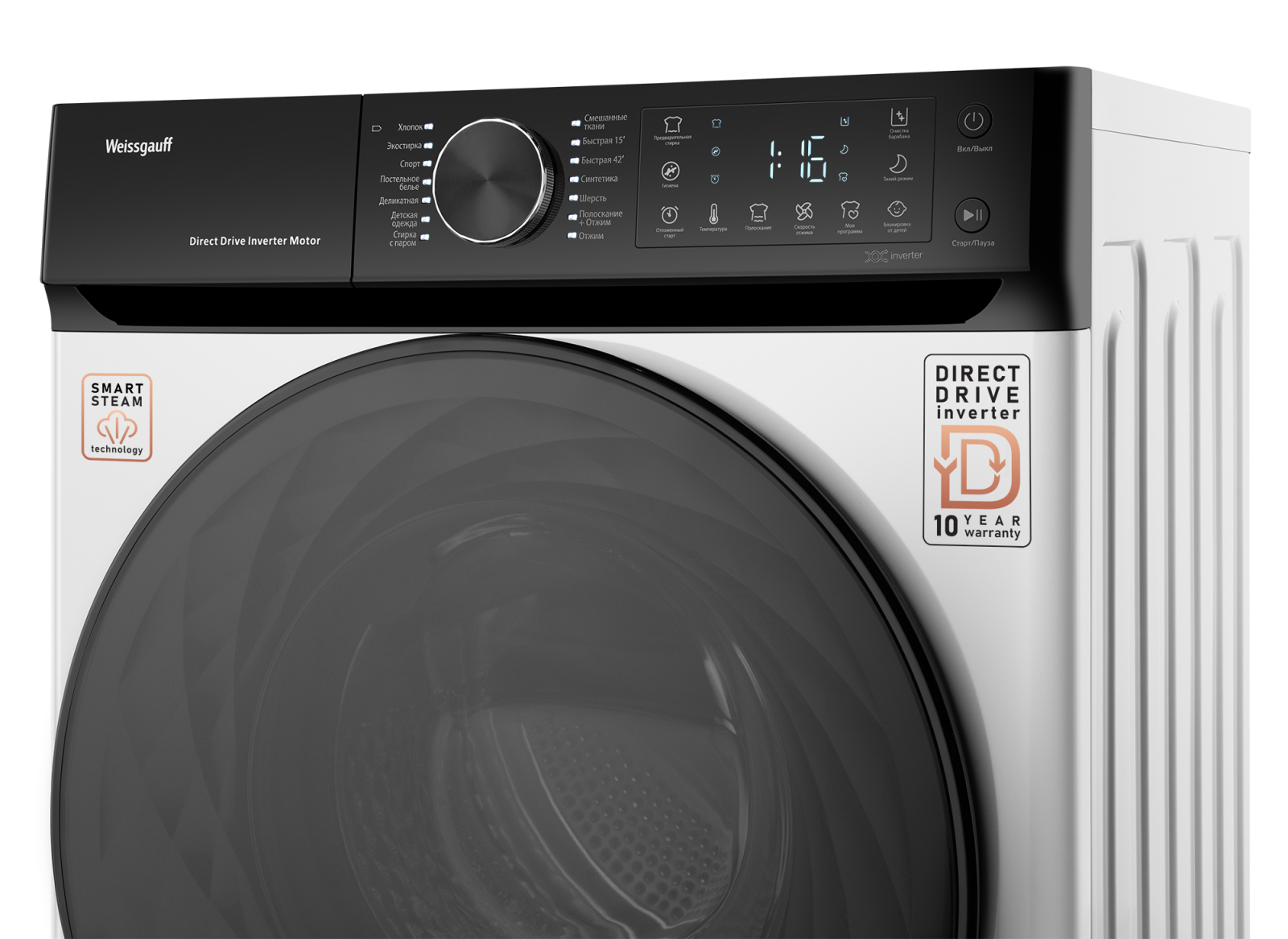 Программы: Хлопок, Быстрая 15', Быстрая 42', Экостирка, Спорт, Постельное белье, Деликатная, Детская одежда, Стирка с паром, Синтетика,Смешанные ткани, Шерсть, Полоскание+ отжим, Отжим, Очистка барабана