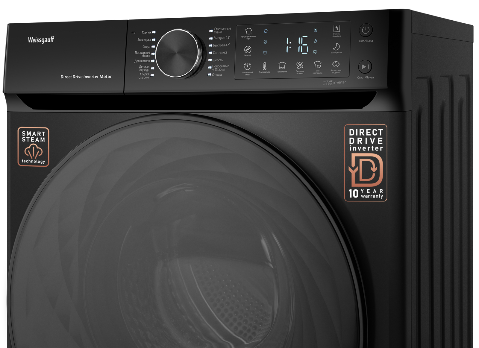 Программы: Хлопок, Быстрая 15', Быстрая 42', Экостирка, Спорт, Постельное белье, Деликатная, Детская одежда, Стирка с паром, Синтетика,Смешанные ткани, Шерсть, Полоскание+ отжим, Отжим, Очистка барабана