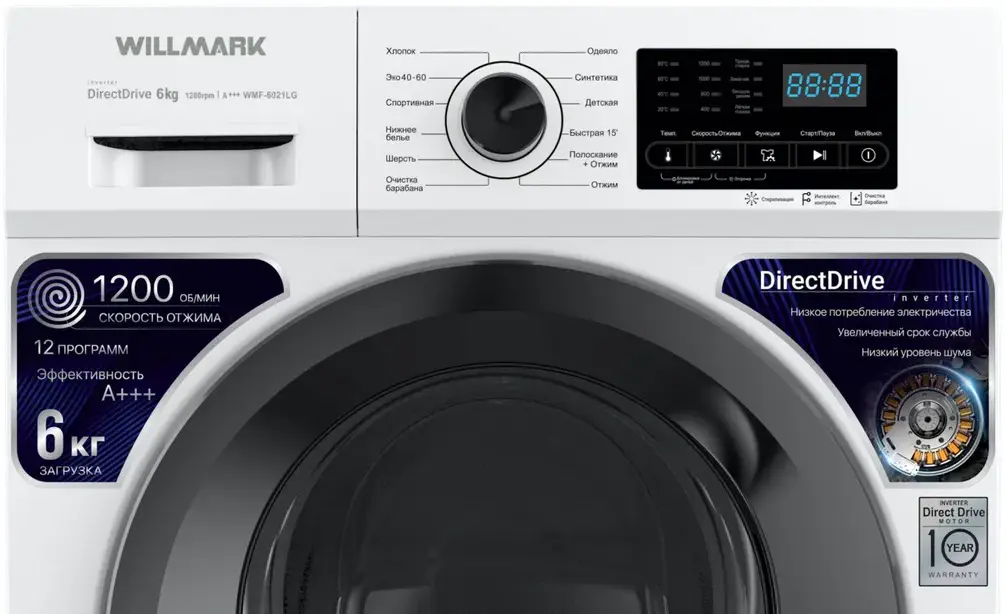 Стиральная машина с инверторным двигателем с прямым приводом станет отличным приобретением для большой семьи, ведь она рассчитана на 6кг загрузки сухого белья. Модель поддерживает 12 программ с разнообразными настройки для адаптации цикла под определенную ткань или тип вещей. Температура, при которой ведется стирка, может быть изменена на усмотрение пользователя, вплоть до режима обеззараживания +90 градусов С. Если стирку необходимо запланировать на удобное время, можно воспользоваться отложенным стартом (до 24 часов).Благодаря стильному и современному дизайну, данная модель отлично впишется в любой интерьер.