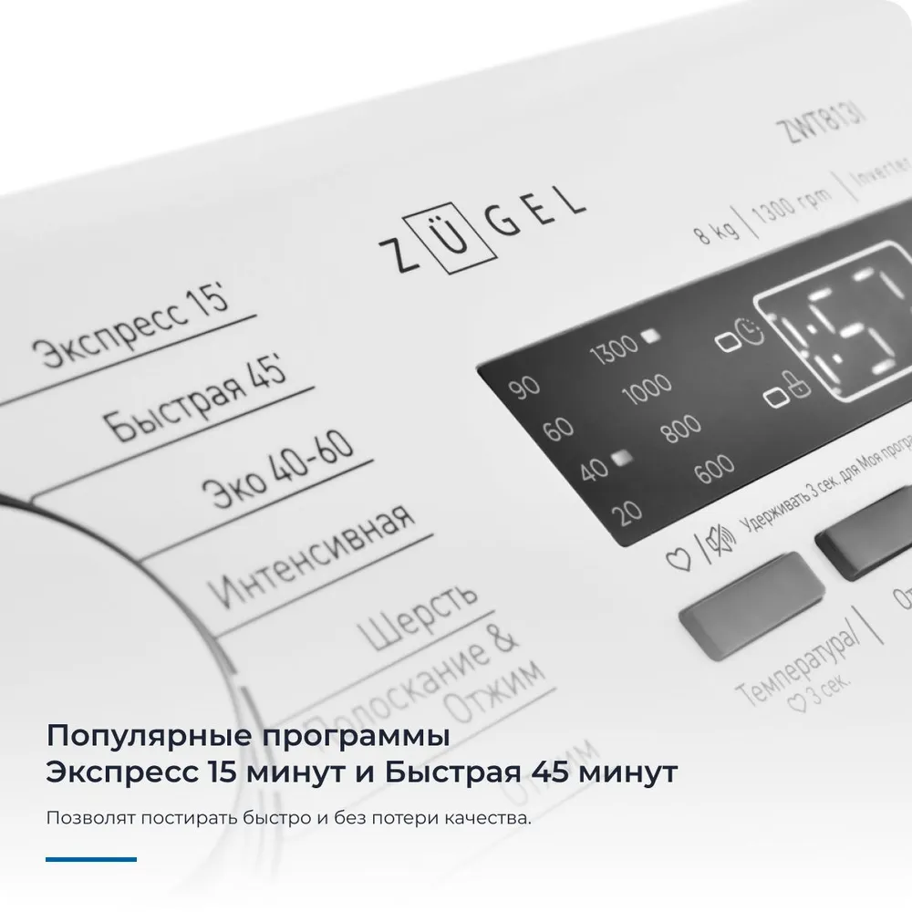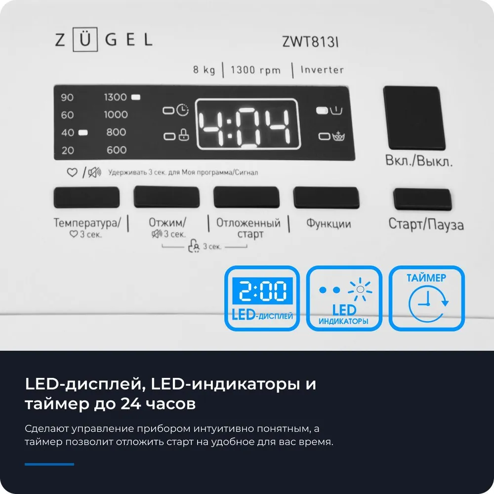 Инверторная стиральная машина ZUGEL ZWT813I — это современное устройство, разработанное для облегчения Вашей повседневной жизни.