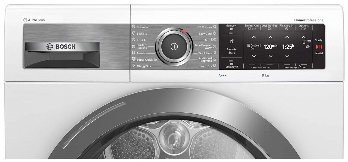 система SensitiveDrying, функция обработки паром Iron Assist, регулируемая температура сушки, Smart Dry: автоматический выбор программы сушки