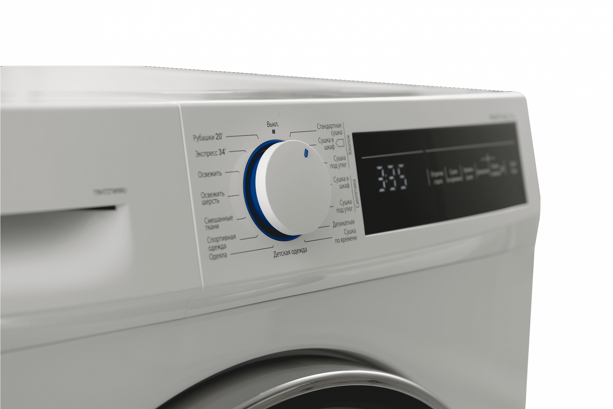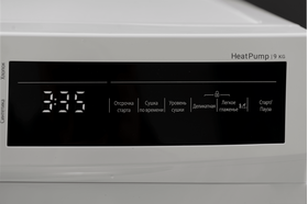 Дополнительные функции: ворсовый фильтр, отложенный старт, предотвращение сминания, сбор конденсата, сигнал окончания стирки