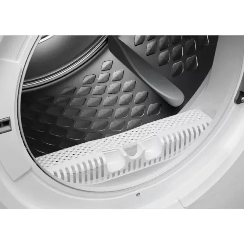 Технология сушки с тепловым насосом сочетает высокую экономичность и деликатность обработки тканей: более низкие температуры защищают волокна и сокращают энергопотребление, что подтверждается классом энергопотребления C (новое обозначение – F). Инверторный двигатель обеспечивает эффективную и тихую работу, уровень шума при сушке составляет 63 дБ, поэтому агрегат не создаёт лишнего дискомфорта при эксплуатации. Электронное управление с информативным дисплеем и набором индикаций позволяет точно контролировать процесс: отображаются стадии сушки «в шкаф», охлаждение, окончание и антисминание, а также подсказки по очистке конденсера и наполнению контейнера для конденсата.