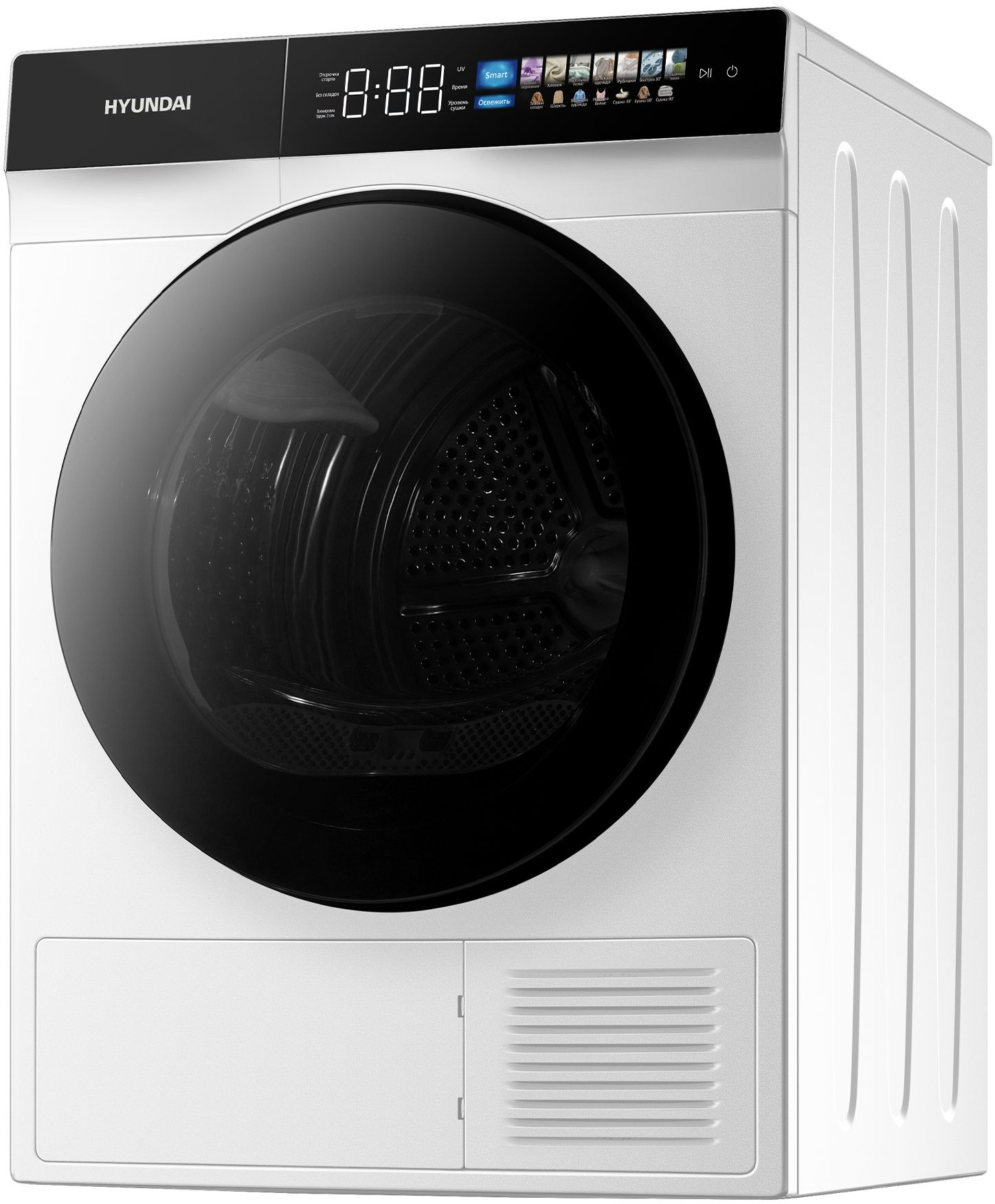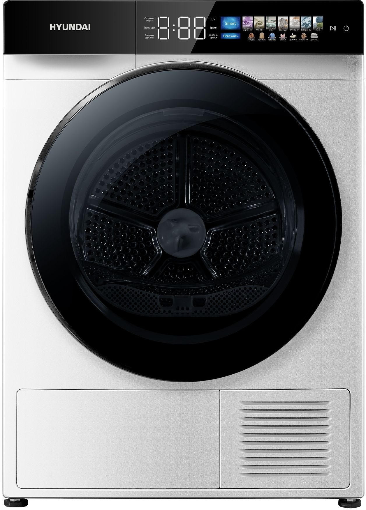 Полностью сенсорное управление: Сушильная машина HYUNDAI DFE9429 оснащена инновационной технологией полностью сенсорного управления, что делает ее использование максимально интуитивным и удобным. Теперь вам не понадобятся многочисленные кнопки и переключатели – все, что вам нужно, это легкое прикосновение к сенсорному экрану для выбора программы, настройки параметров и запуска сушки.