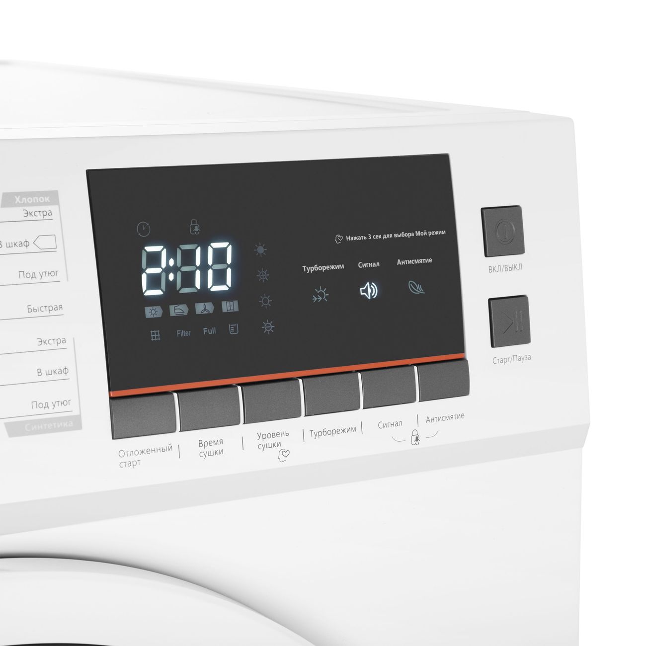 Блокировка от детей - это дополнительная безопасность и гарантия уверенности в том, что сушильная машина не будет случайно включена.