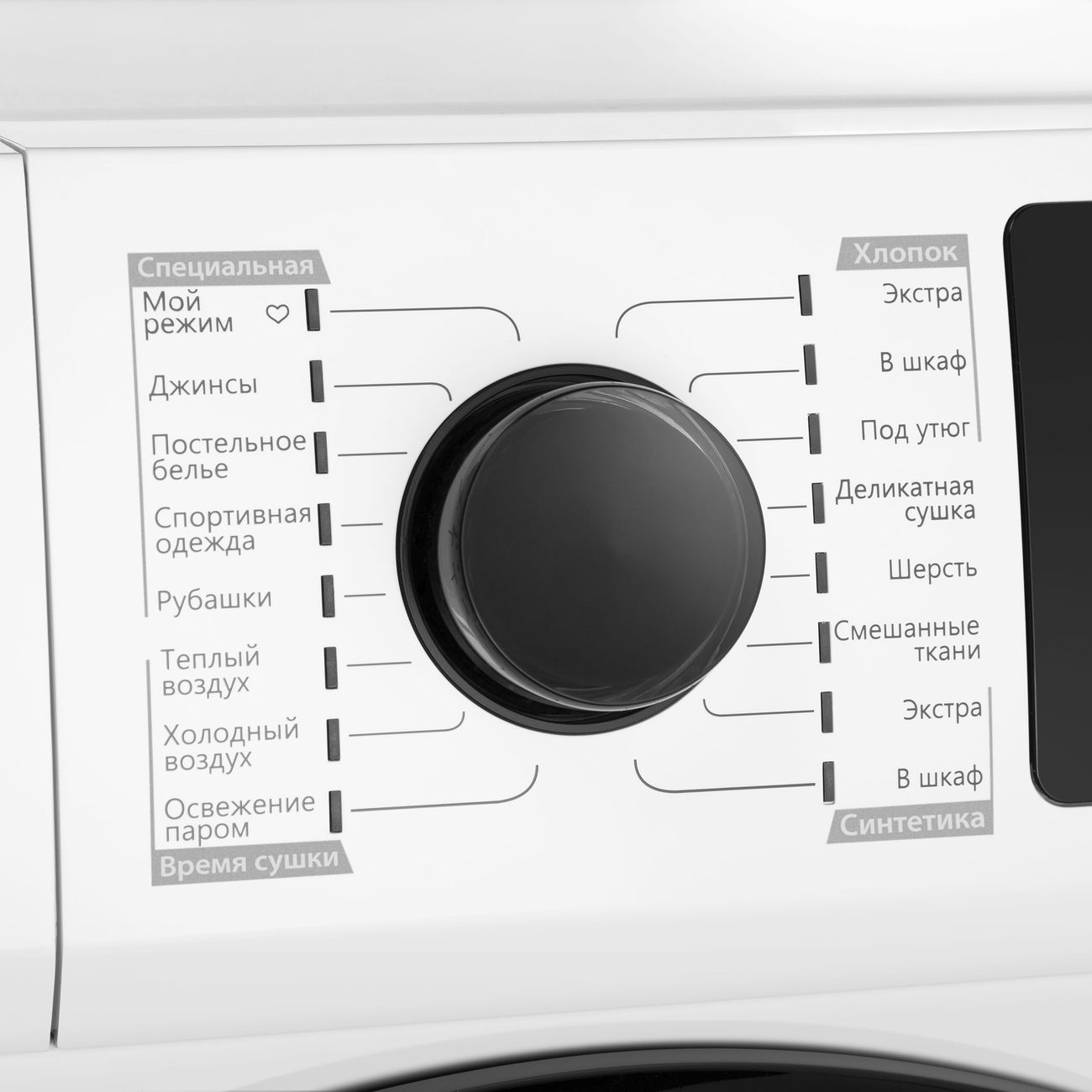Режим «Мой режим» позволит вам создать свою программу стирки с индивидуальными настройками: температурой, скоростью оборотов при отжиме и дополнительными функциями. Ваша уникальная программа будет сохранена и отобразится в верхнем положении регулятора, вы сможете в любой момент включить ее.Режим «Антисмятие» позволяет предотвратить образование складок и заломов на одежде, что делает уход за бельем легче и проще.