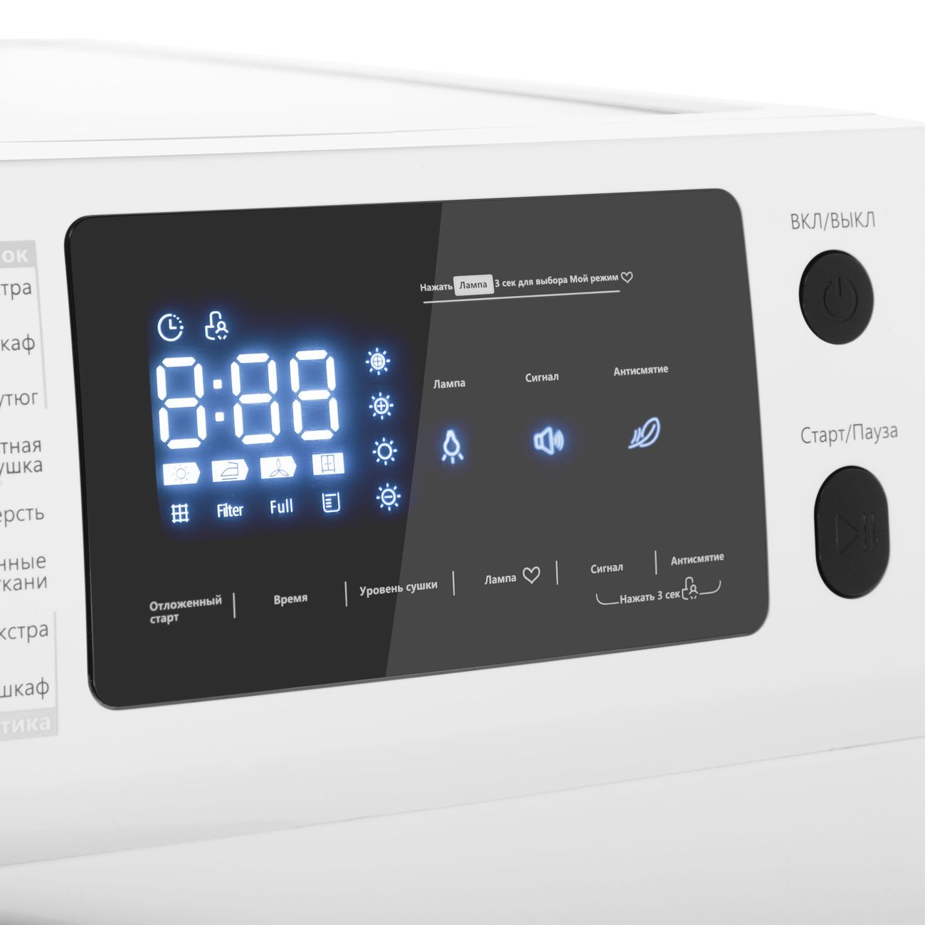 Блокировка от детей - это дополнительная безопасность и гарантия уверенности в том, что сушильная машина не будет случайно включена.