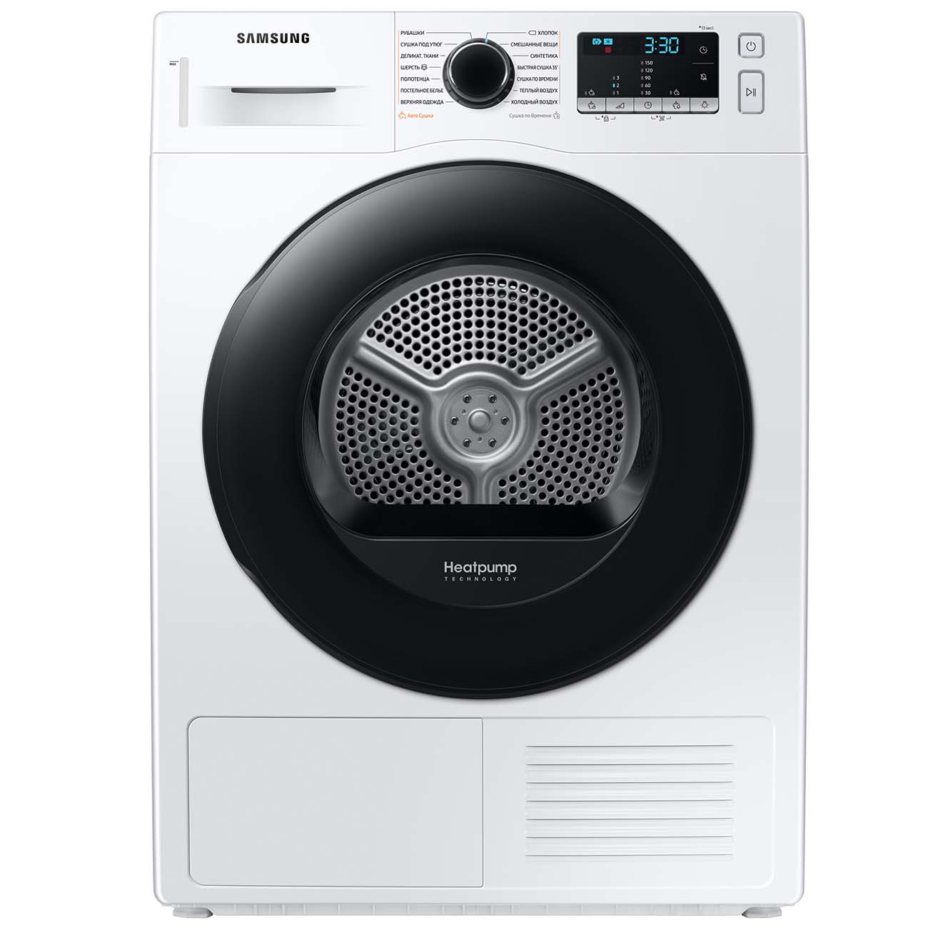 Сушильная машина Samsung DV90TA040AE в корпусе классического белого цвета оснащена перенавешиваемой дверцей. Безопасную эксплуатацию модели обеспечивают опция защиты от детей и система самодиагностики неисправностей.
